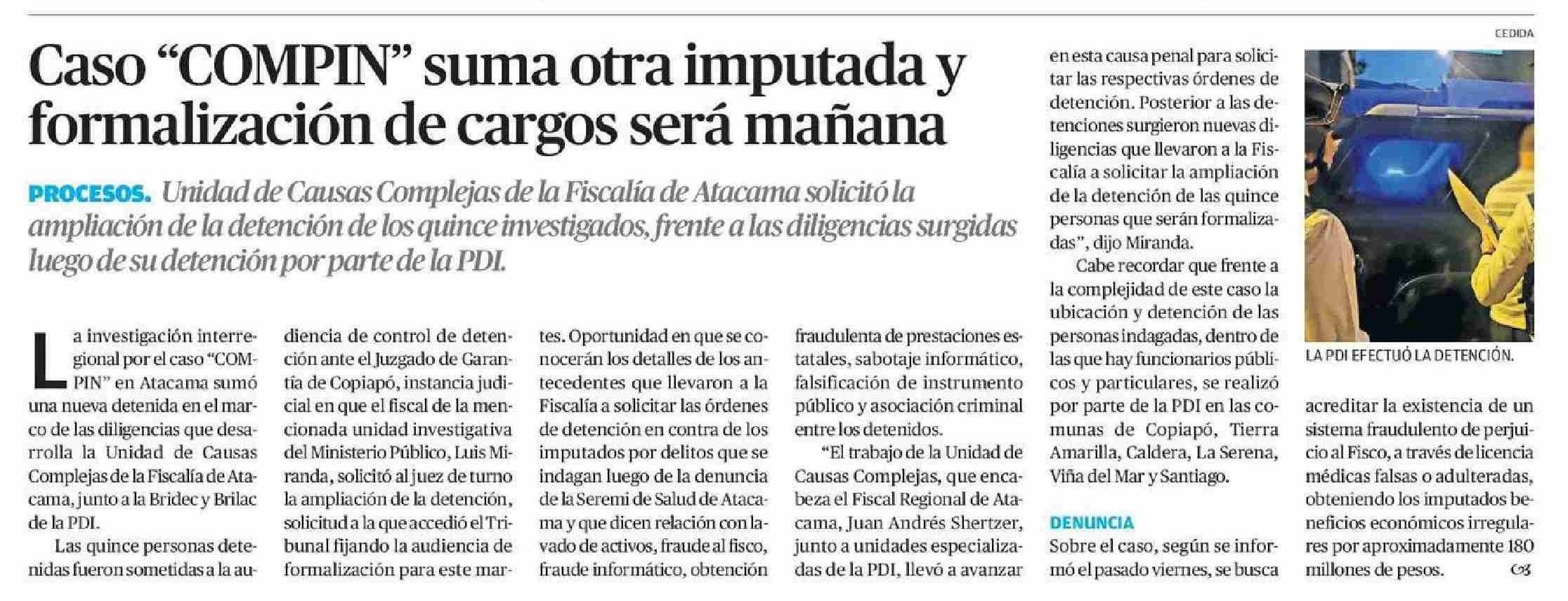 Título: Caso "COMPIN" suma otra imputada y formalización de cargos será mañana
