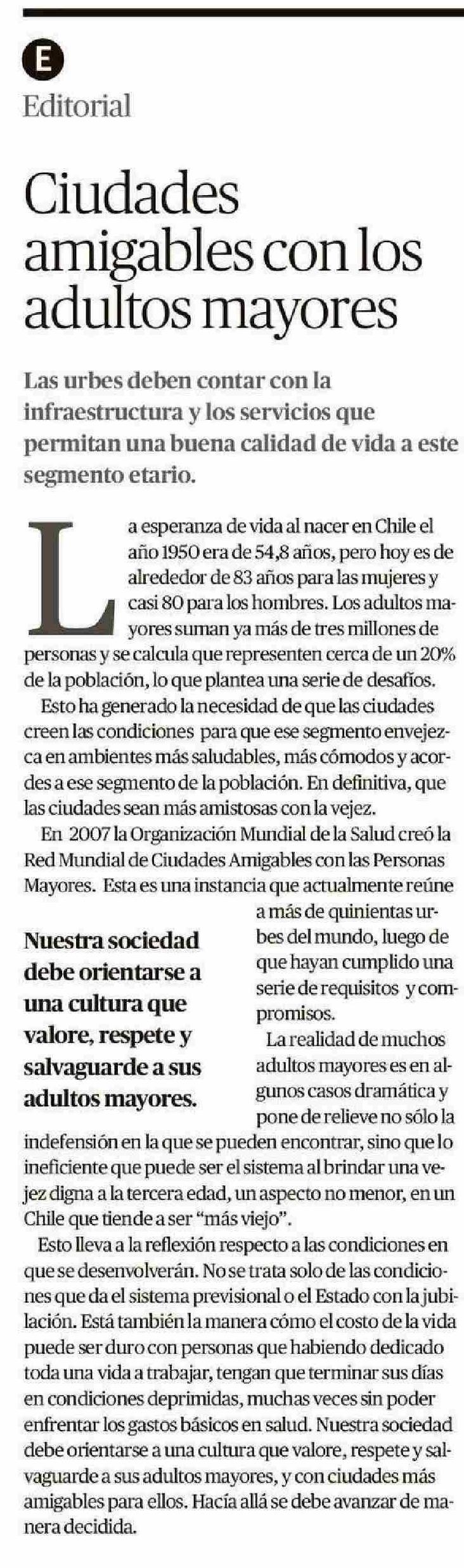 Editorial: Ciudades amigables con los adultos mayores 04-06-2025 El Austral de Osorno |