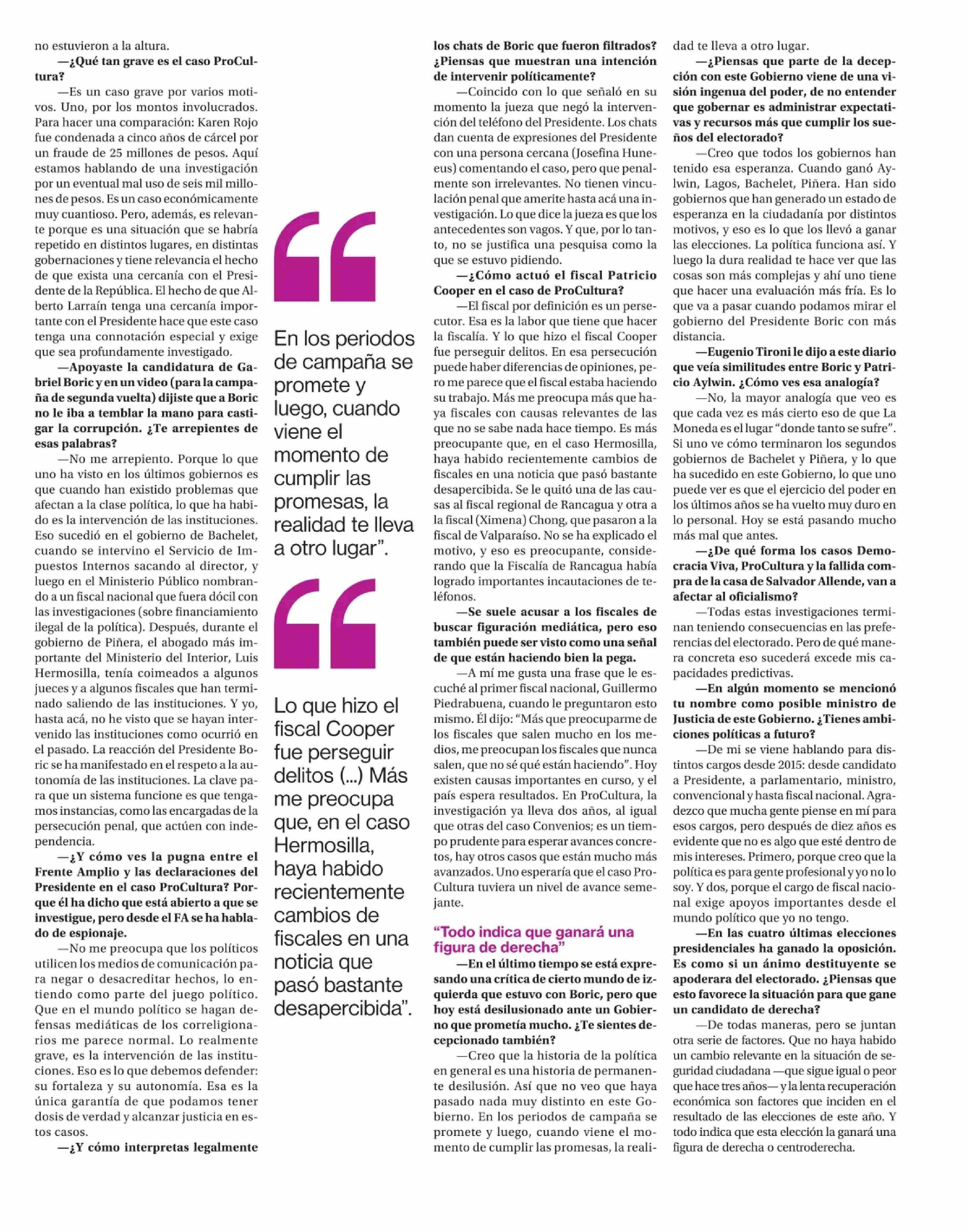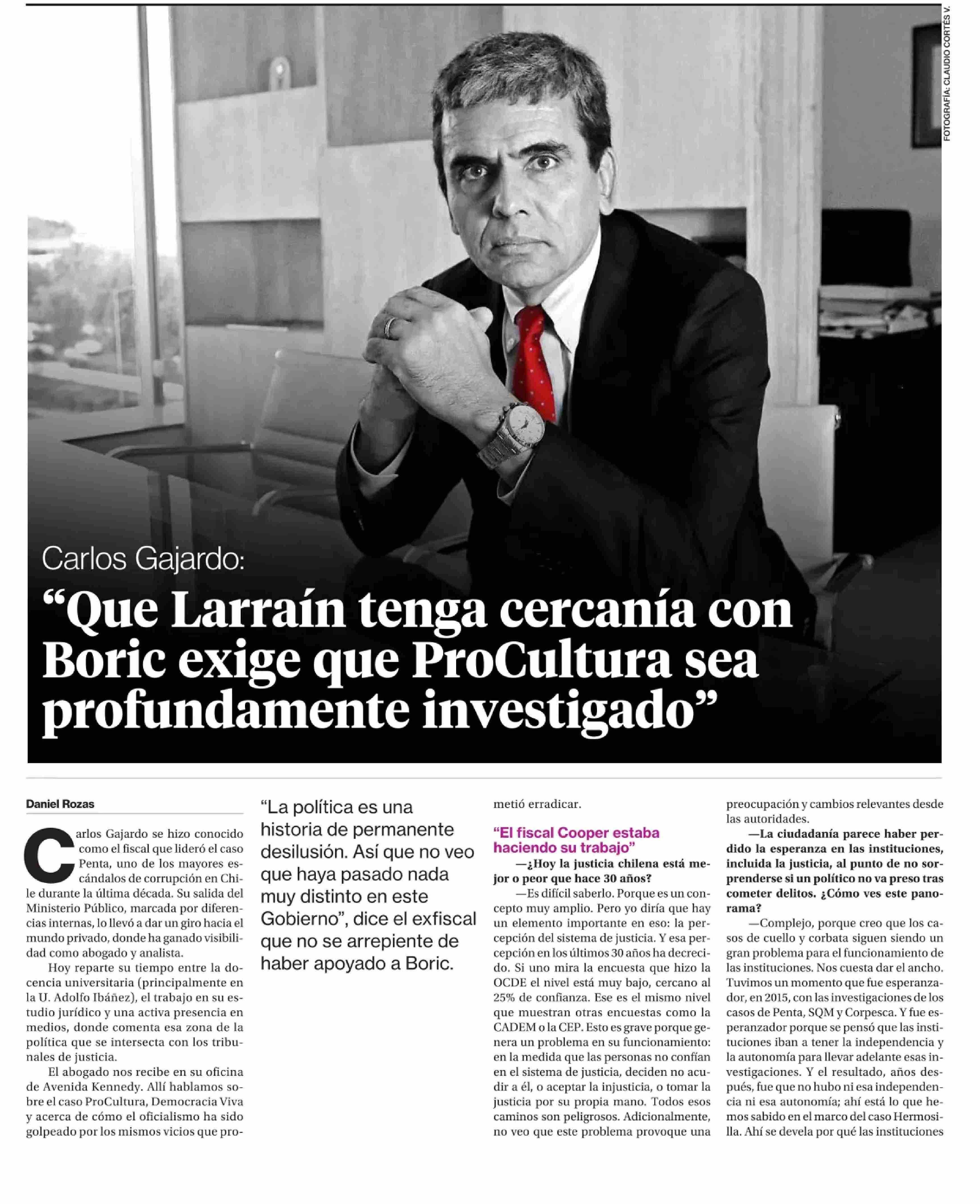 "Que Larraín tenga cercanía con Boric exige que ProCultura sea profundamente investigado” 20-05-2025 La Segunda |