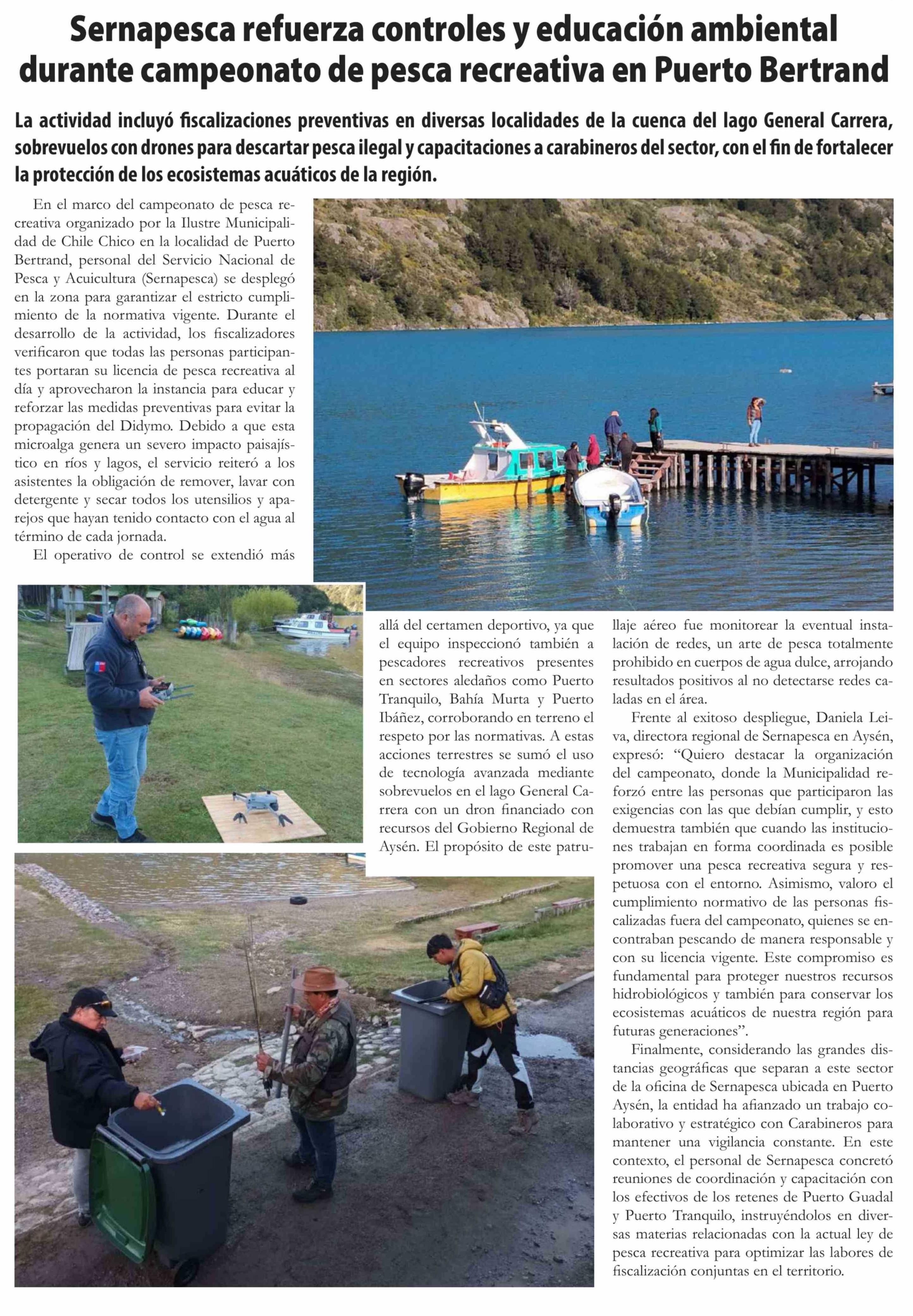 | Título: | Sernapesca refuerza controles y educación ambiental durante campeonato de pesca recreativa en Puerto Bertrand |