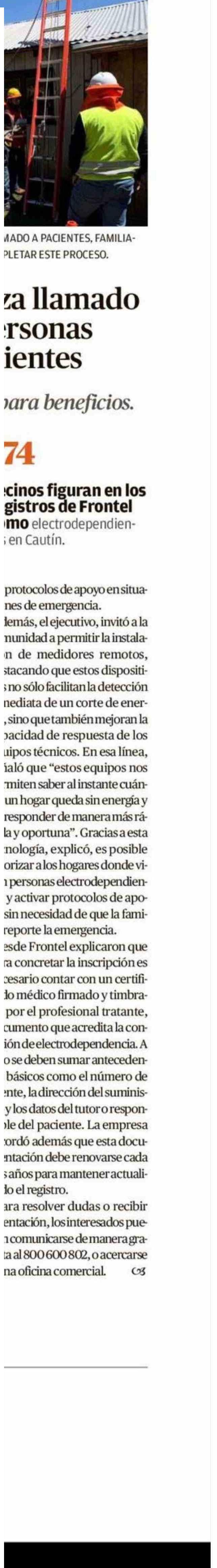 Título: Frontel refuerza llamado a registrar a personas electrodependientes