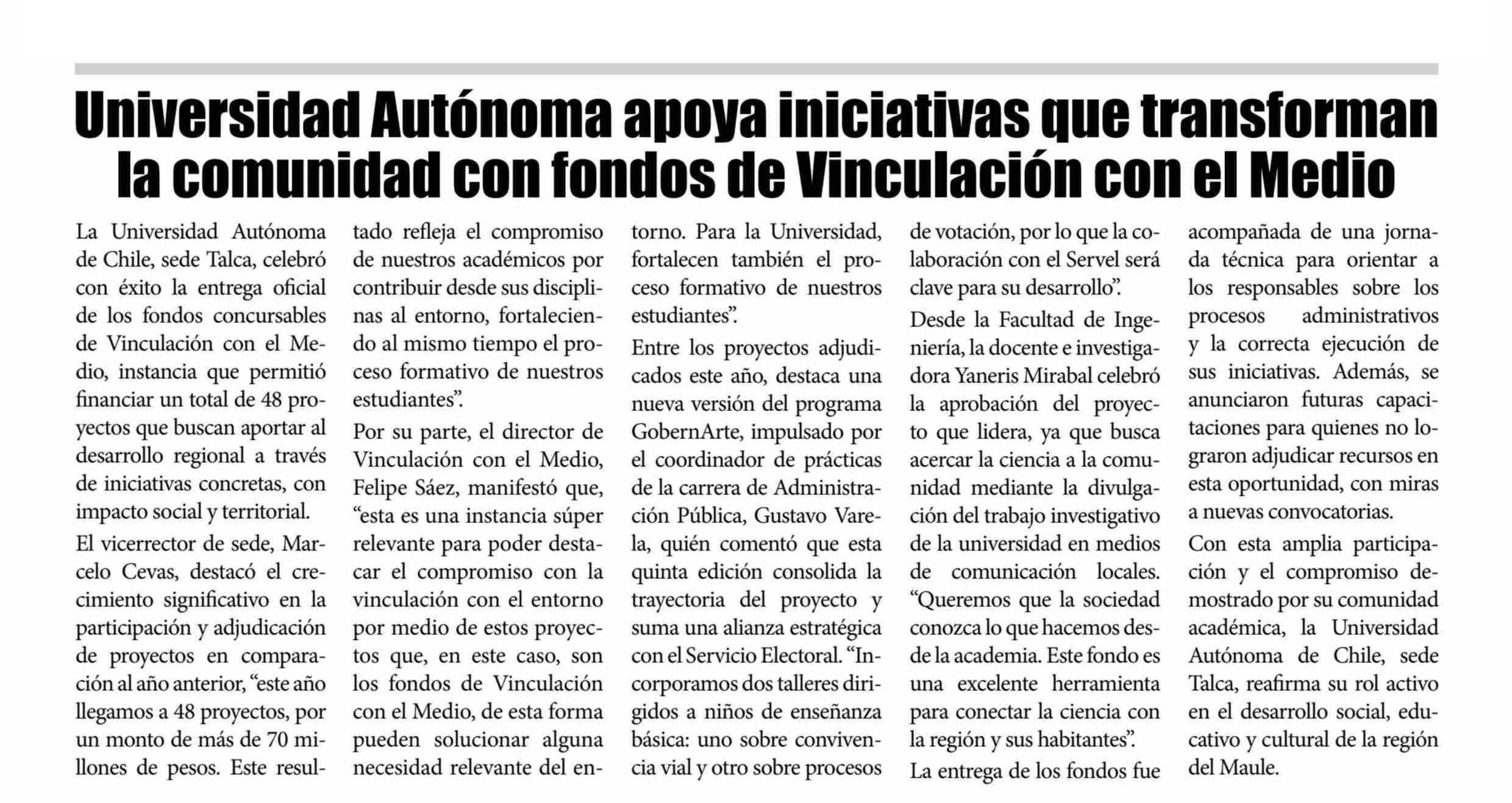 Fecha: 02-05-2025 Sector: Noticia general Región: Región del Maule