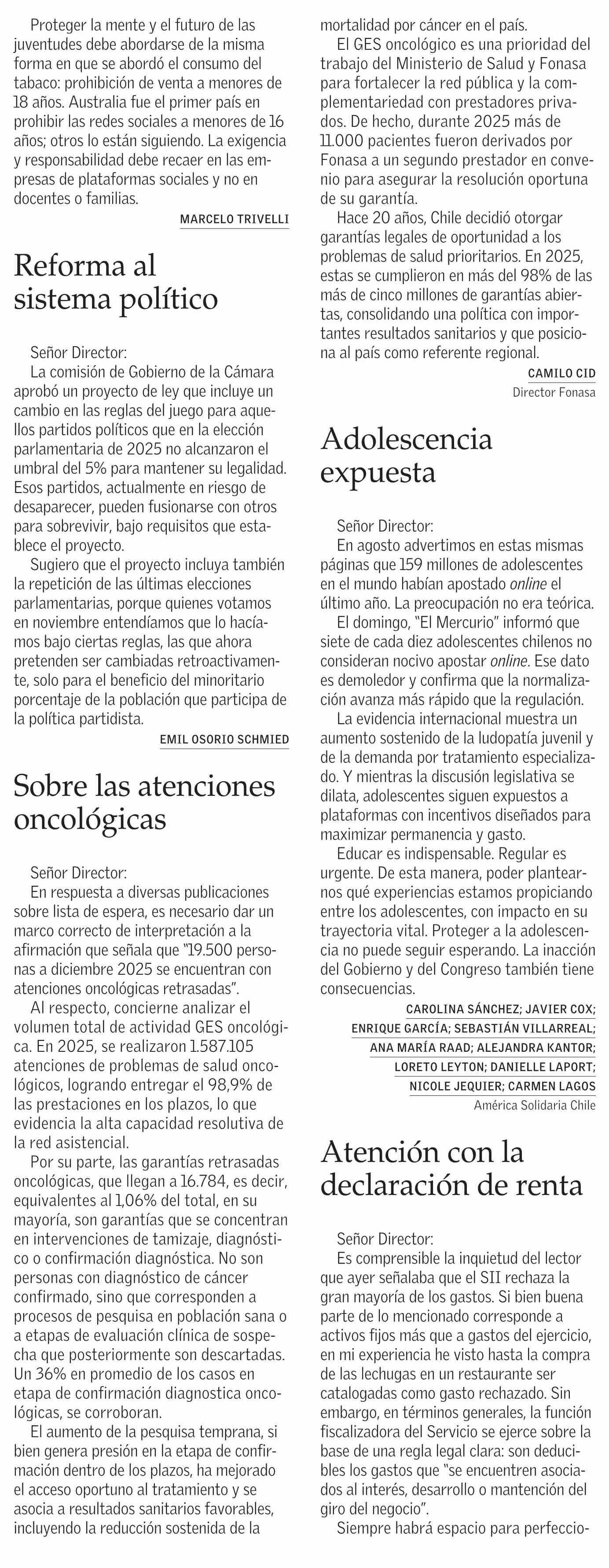 Sobre las atenciones oncológicas 04-03-2026 El Mercurio |