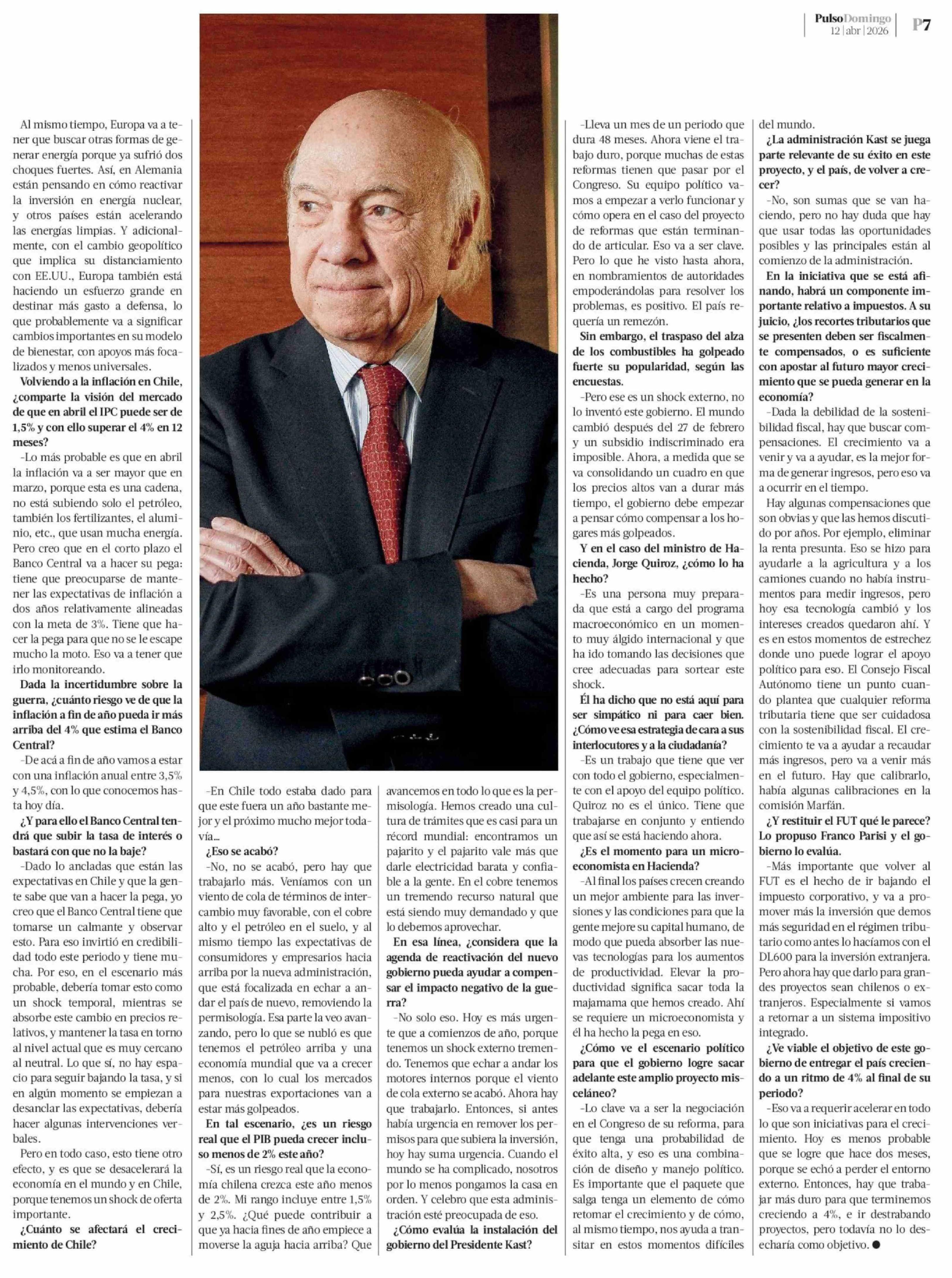 VITTORIO CORBO "Tenemos que echar a andar los motores internos porque el viento de cola externo se acabó" 12-04-2026 La Tercera |