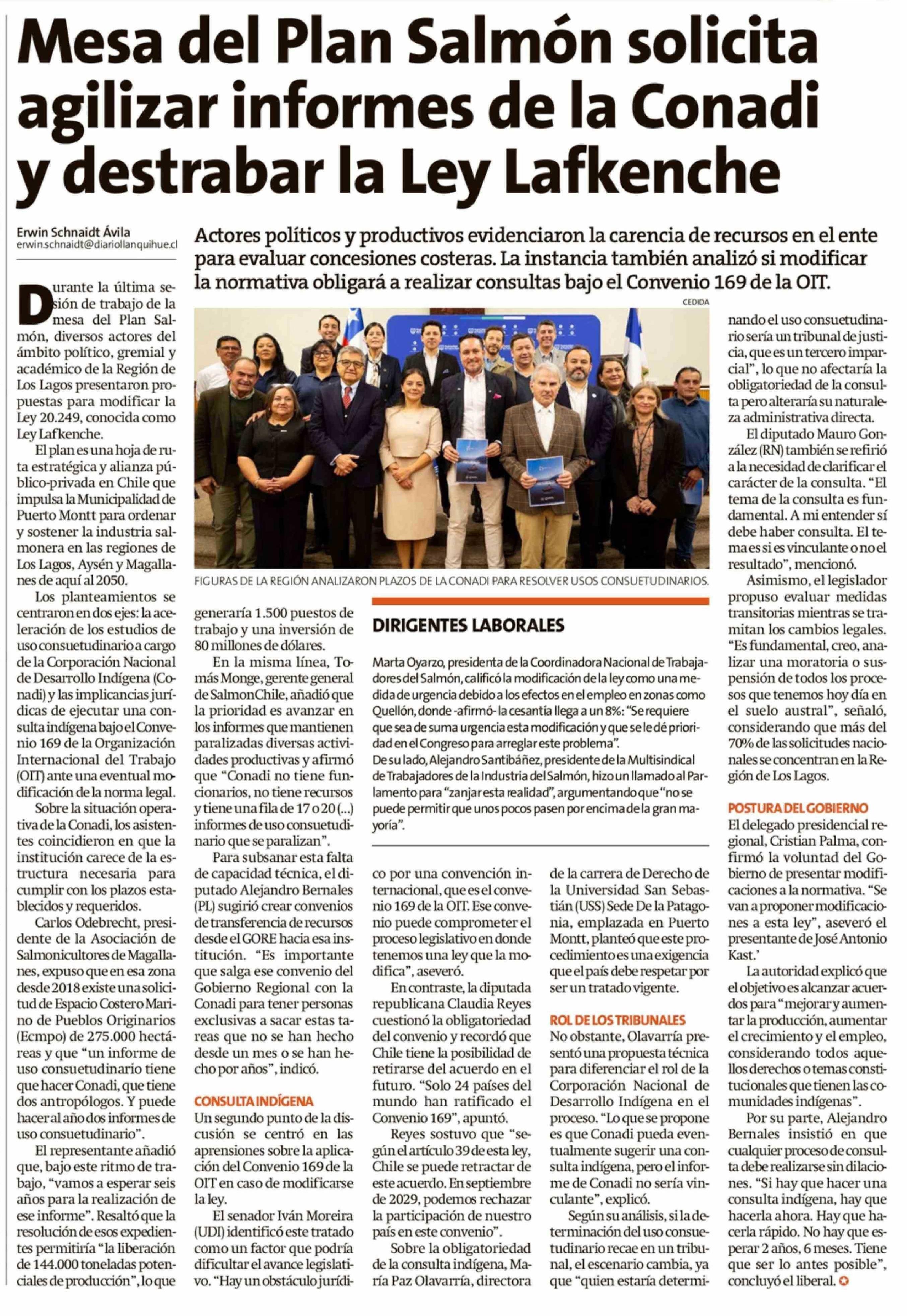 Título: Mesa del Plan Salmón solicita agilizar informes de la Conadi y destrabar la Ley Lafkenche