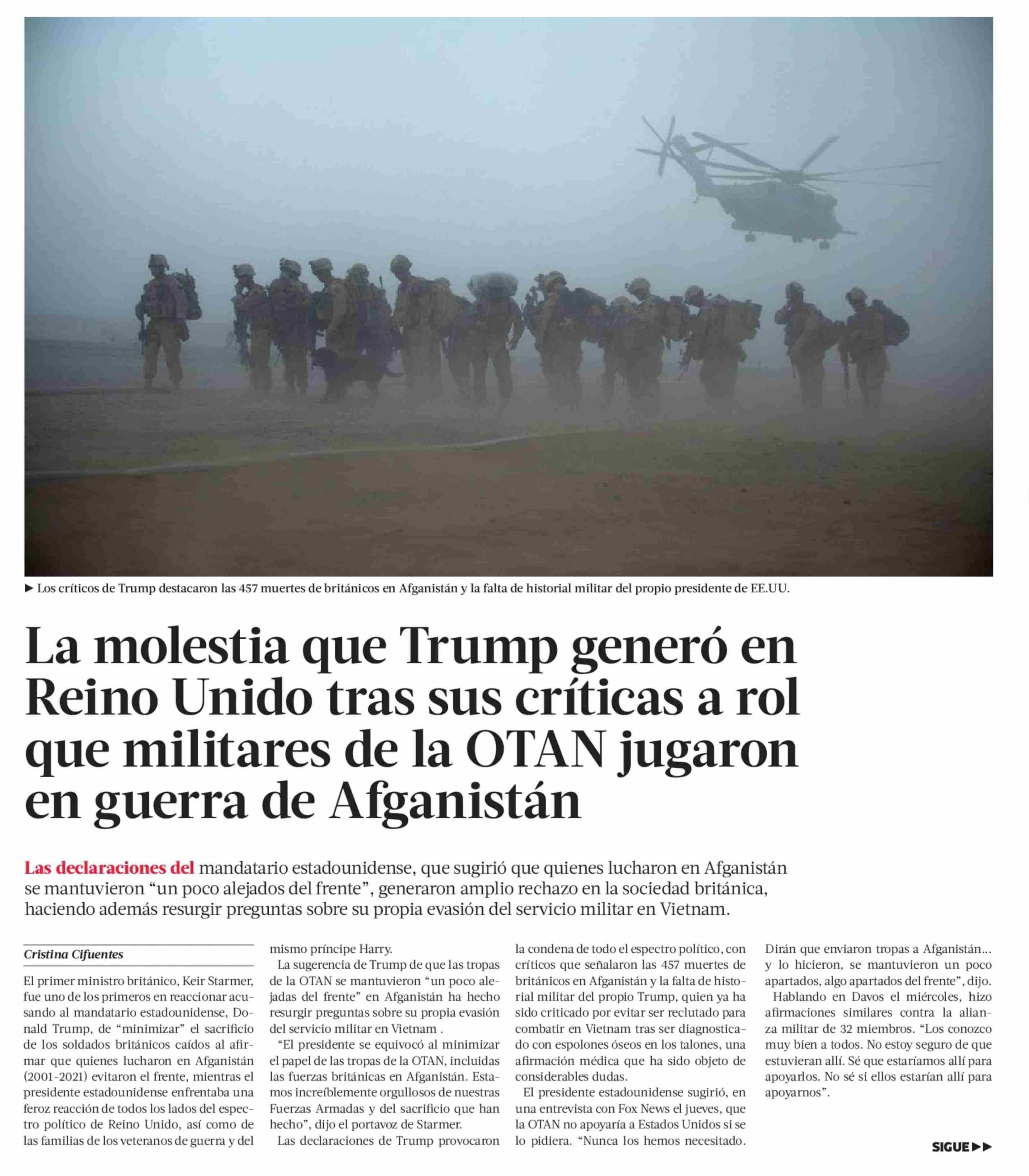 Título: La molestia que Trump generó en Reino Unido tras sus críticas a rol que militares de la OTAN jugaron en guerra de Afganistán