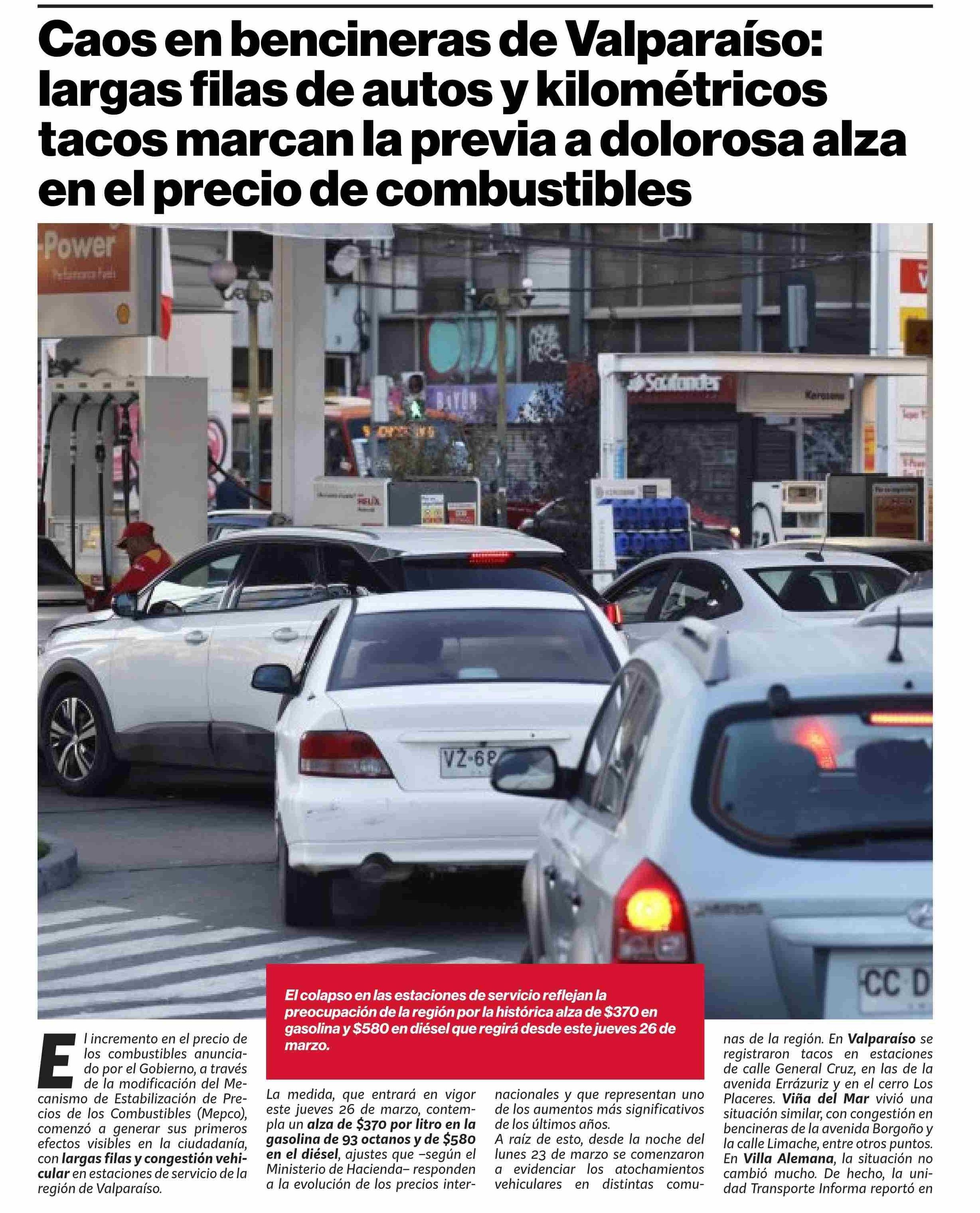 | Título: | Caos en bencineras de Valparaíso: largas filas de autos y kilométricos tacos marcan la previa a dolorosa alza en el precio de combustibles |