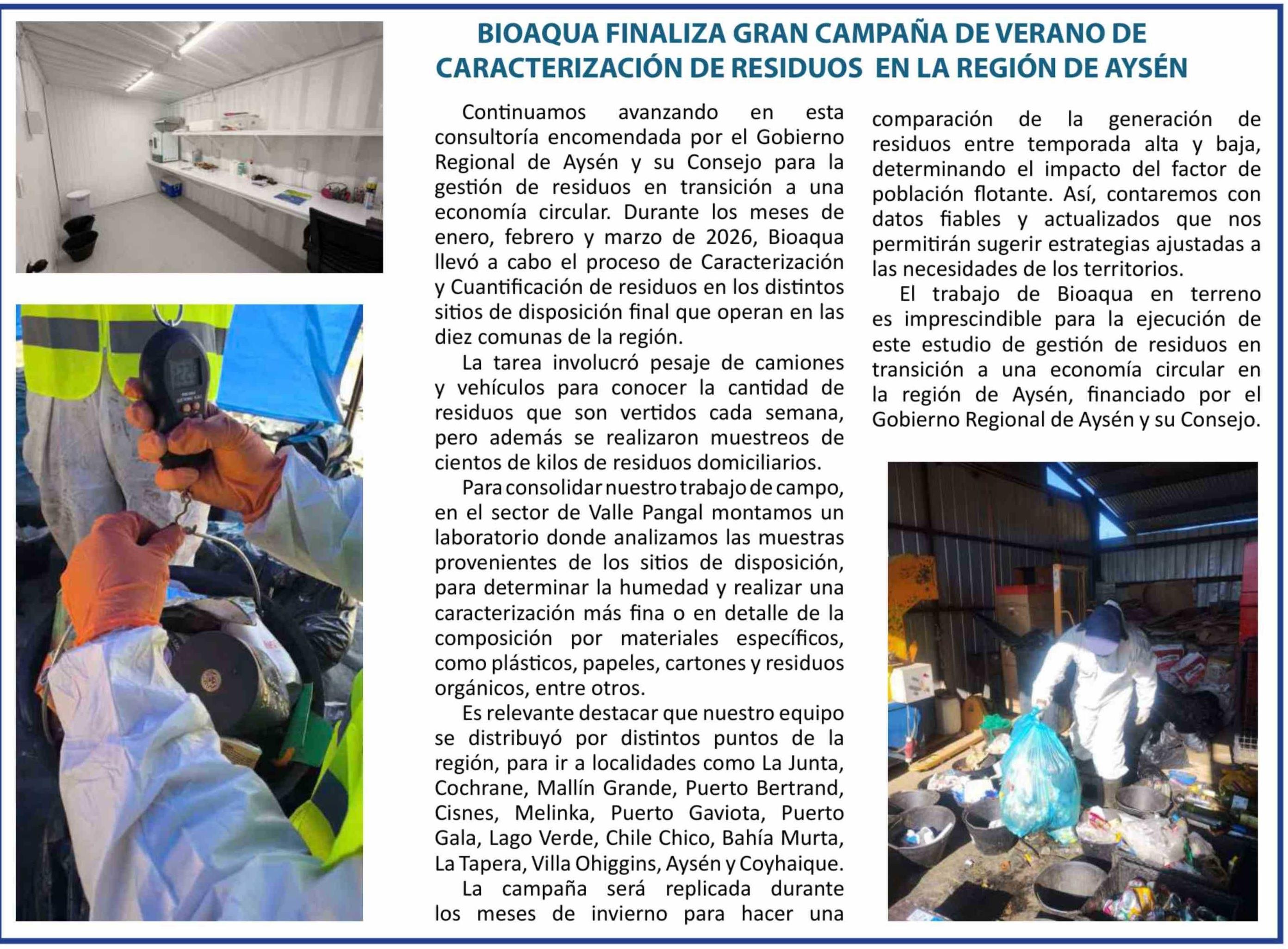 BIOAQUA FINALIZA GRAN CAMPAÑA DE VERANO DE CARACTERIZACIÓN DE RESIDUOS EN LA REGIÓN DE AYSÉN 06-04-2026 El Divisadero |