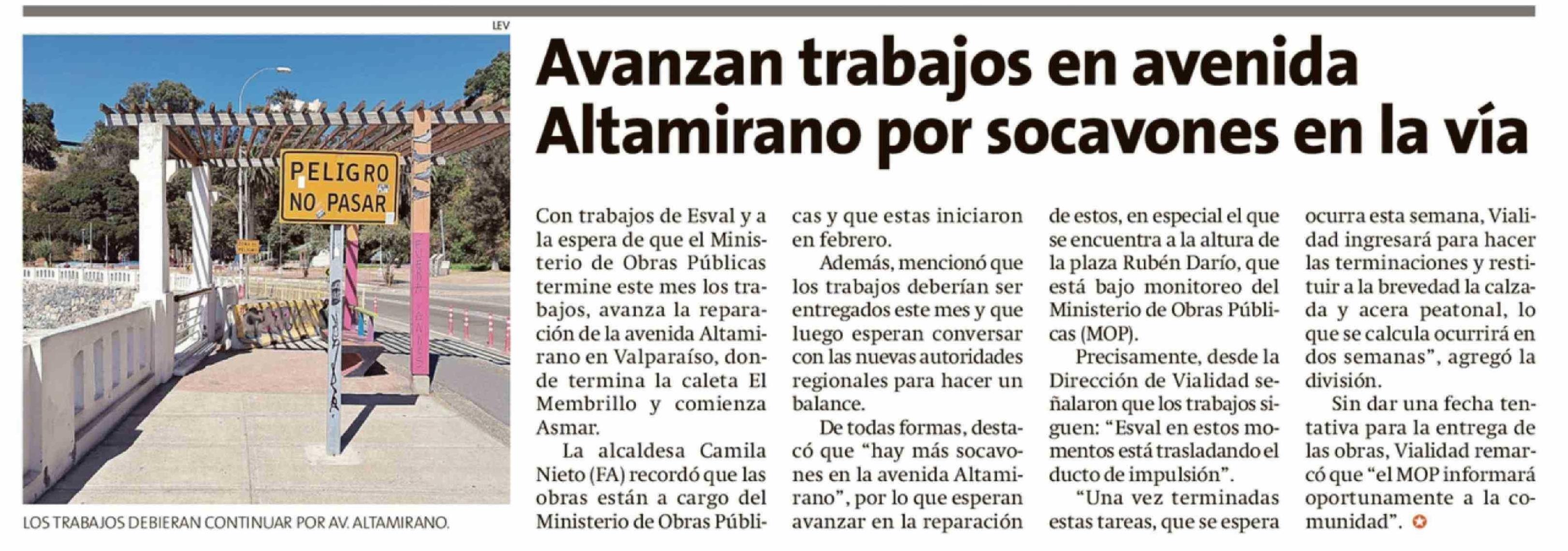 Avanzan trabajos en avenida Altamirano por socavones en la vía 07-04-2026 La Estrella de Valparaíso |