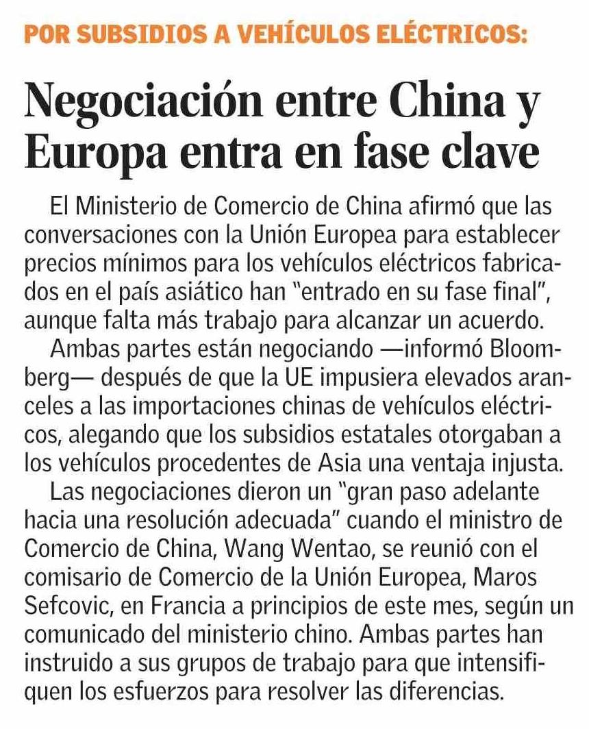 | Título: | Negociación entre China y Europa entra en fase clave |