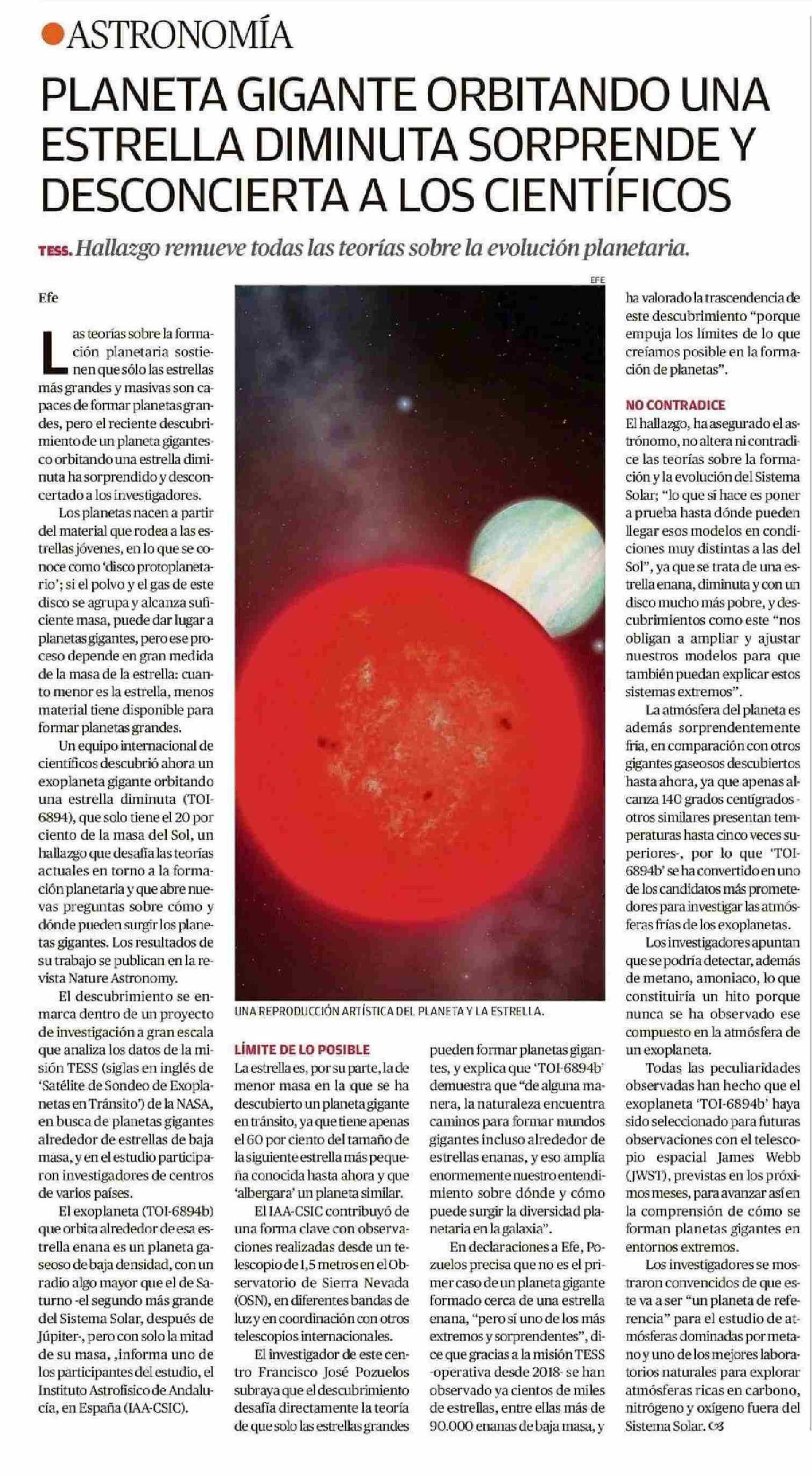 PLANETA GIGANTE ORBITANDO UNA ESTRELLA DIMINUTA SORPRENDE Y DESCONCIERTA A LOS CIENTIFICOS 05-06-2025 Crónica de Chillán |