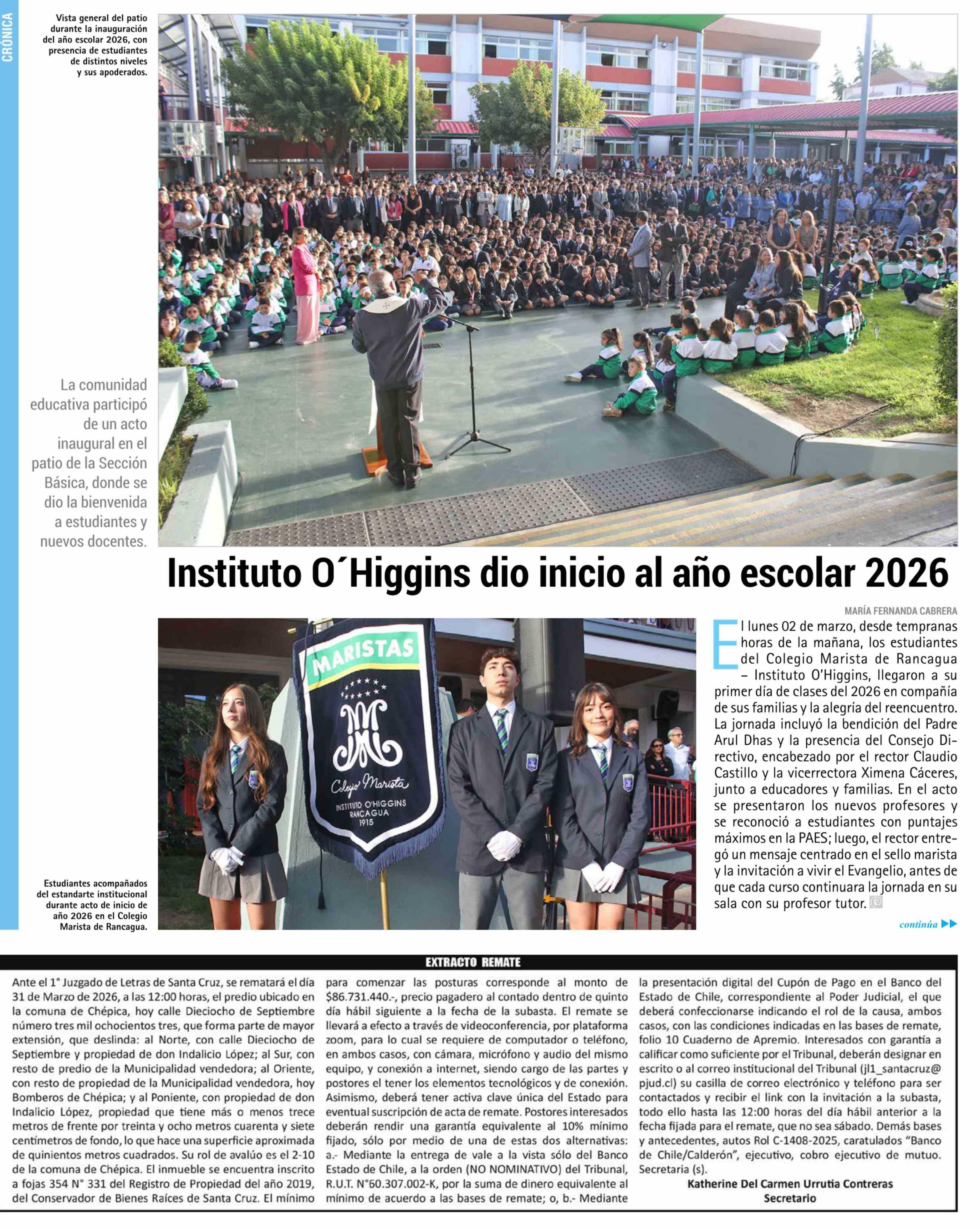 | Fecha: | 03-03-2026 | Sector: | Noticia general | Región: | Región del Libertador General Bernardo O'Higgins |