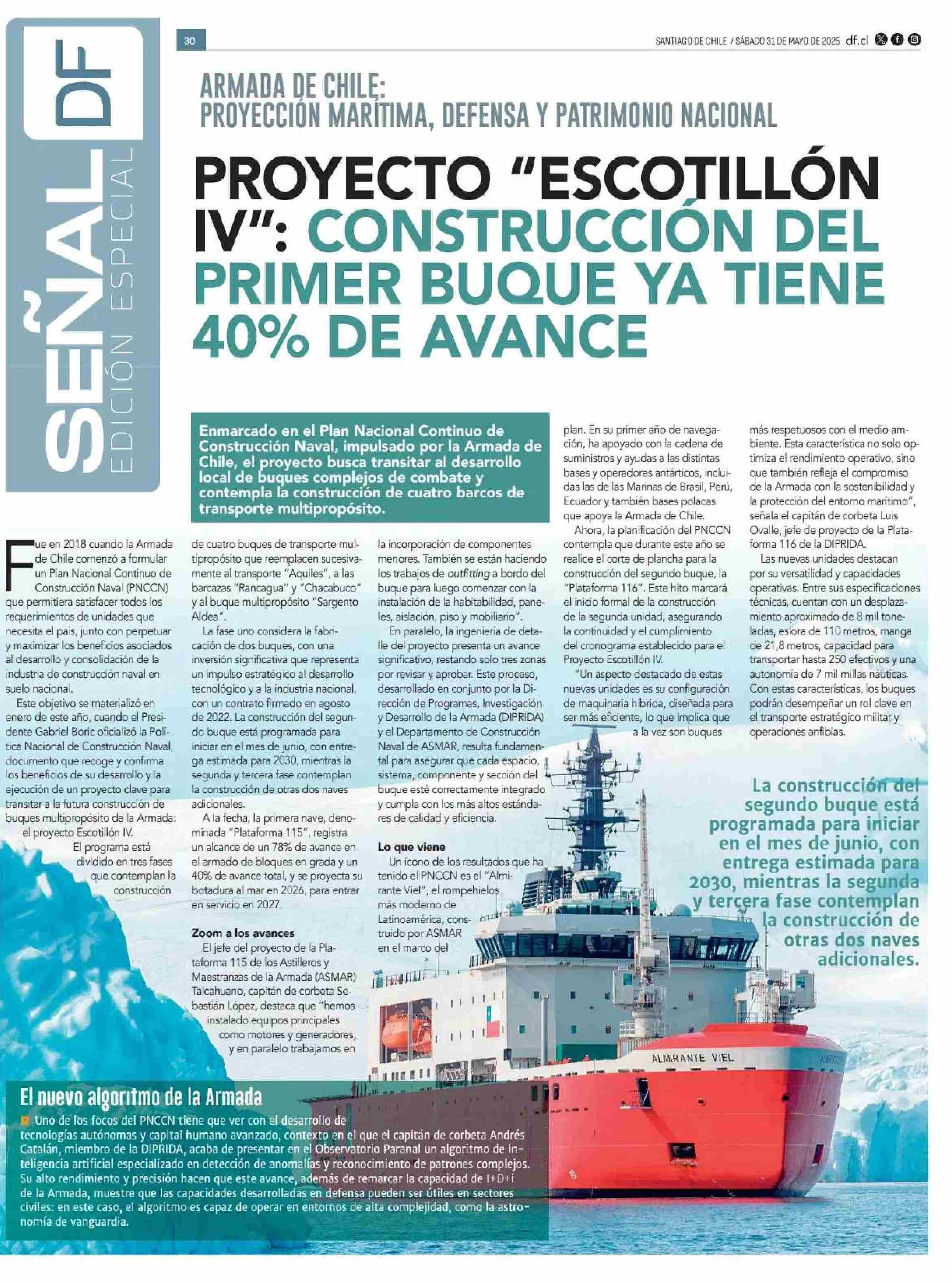 PROYECTO “ESCOTILLON IV”: CONSTRUCCION DEL PRIMER BUQUE YA TIENE 40% DE AVANCE 31-05-2025 Diario Financiero |