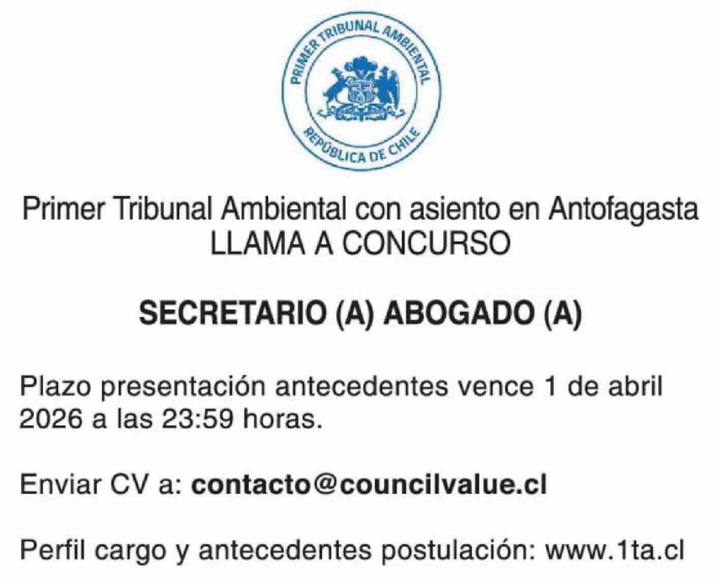 Aviso Licitaciones: Primer Tribunal Ambiental con asiento en Antofagasta 12-03-2026 La Tercera |