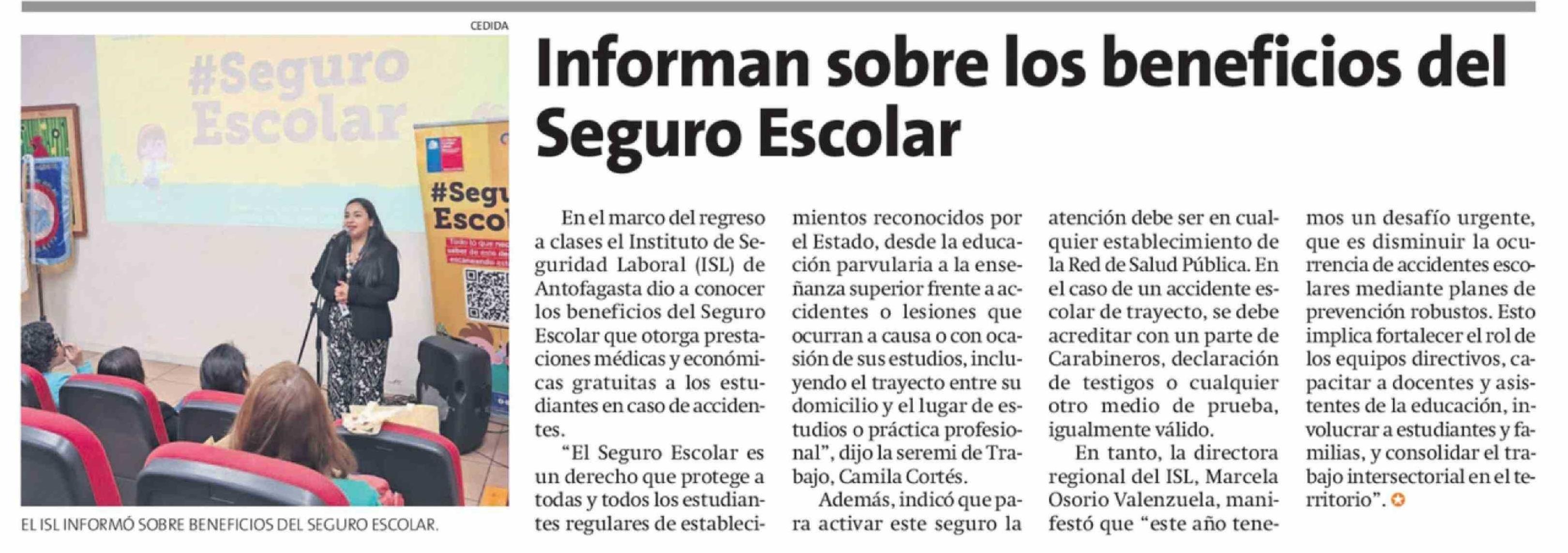 Informan sobre los beneficios del Seguro Escolar 07-03-2026 La Estrella de Antofagasta |