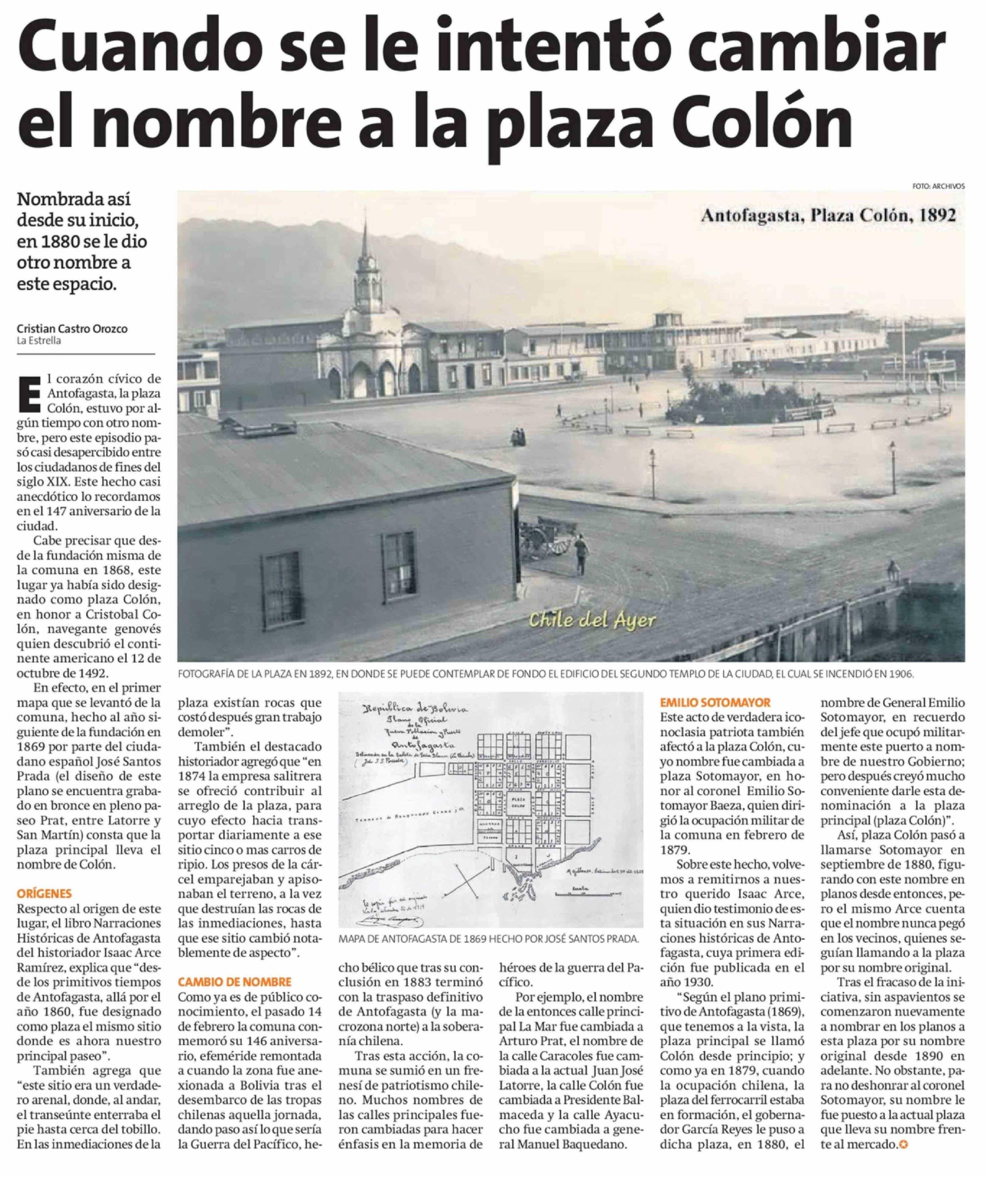 Cuando se le intentó cambiar el nombre a la plaza Colón 17-02-2026 La Estrella de Antofagasta |