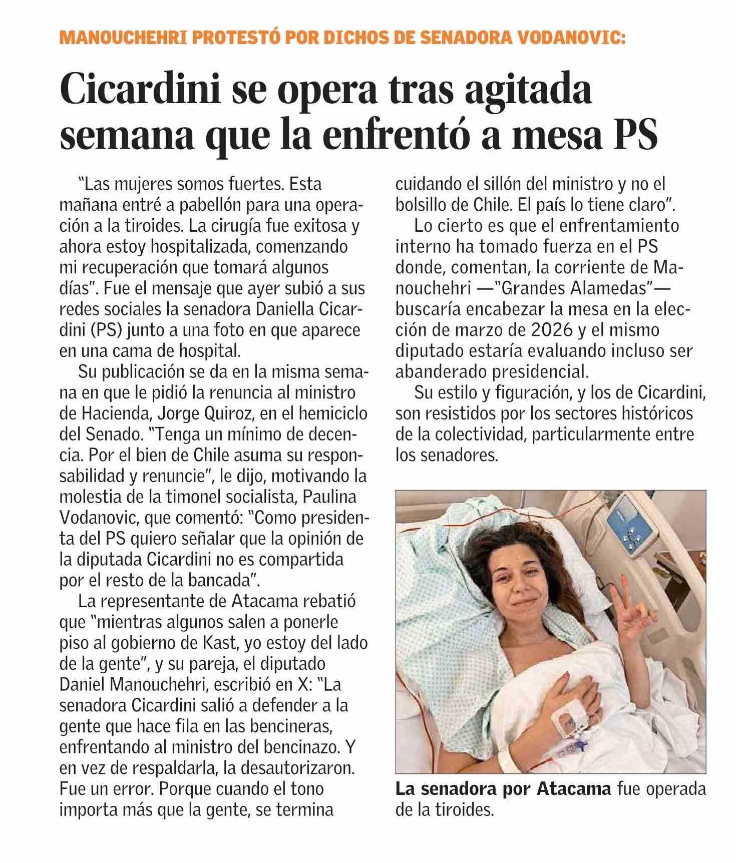 Título: Cicardini se opera tras agitada semana que la enfrentó a mesa PS