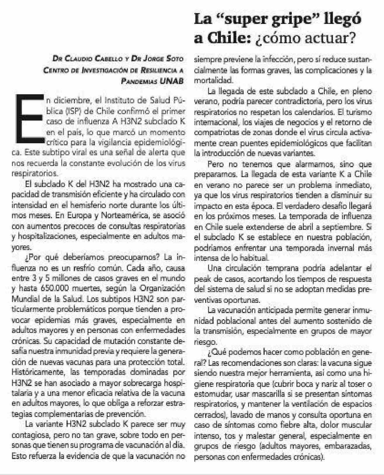 Columnas de Opinión: La "super gripe" llegó a Chile: ¿ cómo actuar? 07-01-2026 La Prensa Austral |