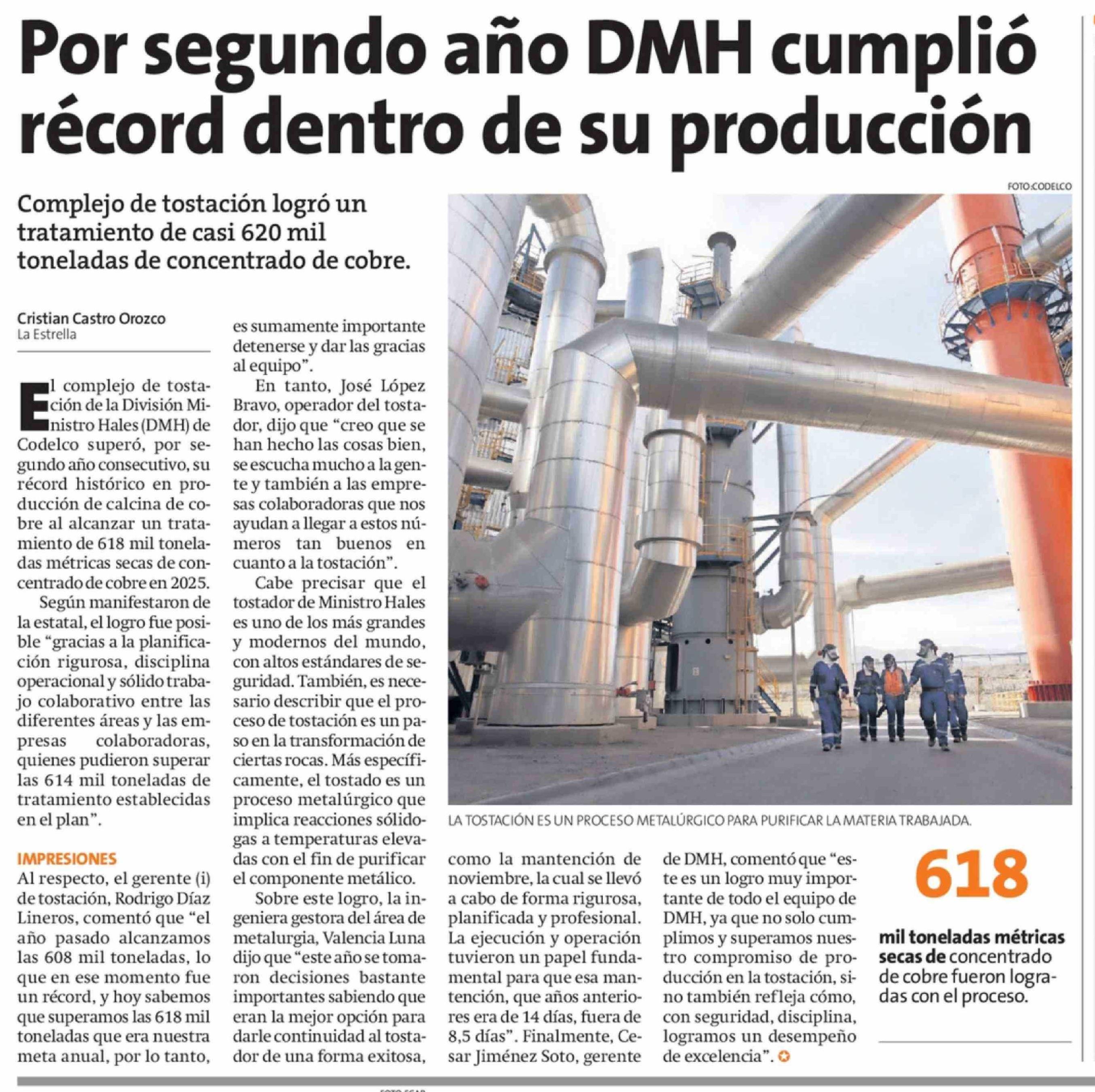 Por segundo año DMH cumplió récord dentro de su producción 10-02-2026 La Estrella de Antofagasta |