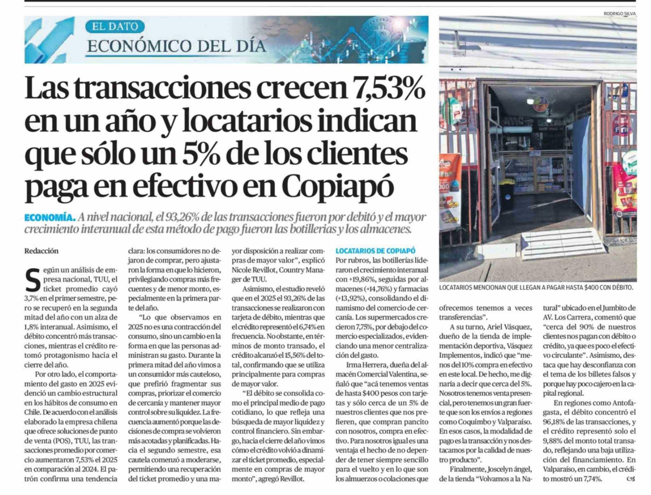 Título: Las transacciones crecen 7,53% en un año y locatarios indican que sólo un 5% de los clientes paga en efectivo en Copiapó