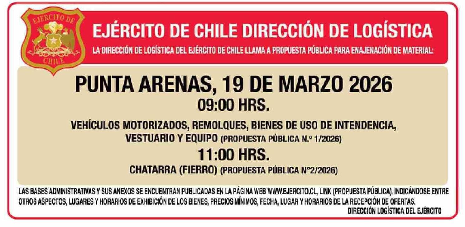 Título: AVISO LICITACIONES: EJÉRCITO DE CHILE DIRECCIÓN DE LOGÍSTICA