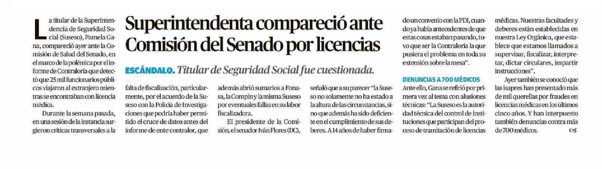 | Título: | Superintendenta compareció ante Comisión del Senado por licencias |