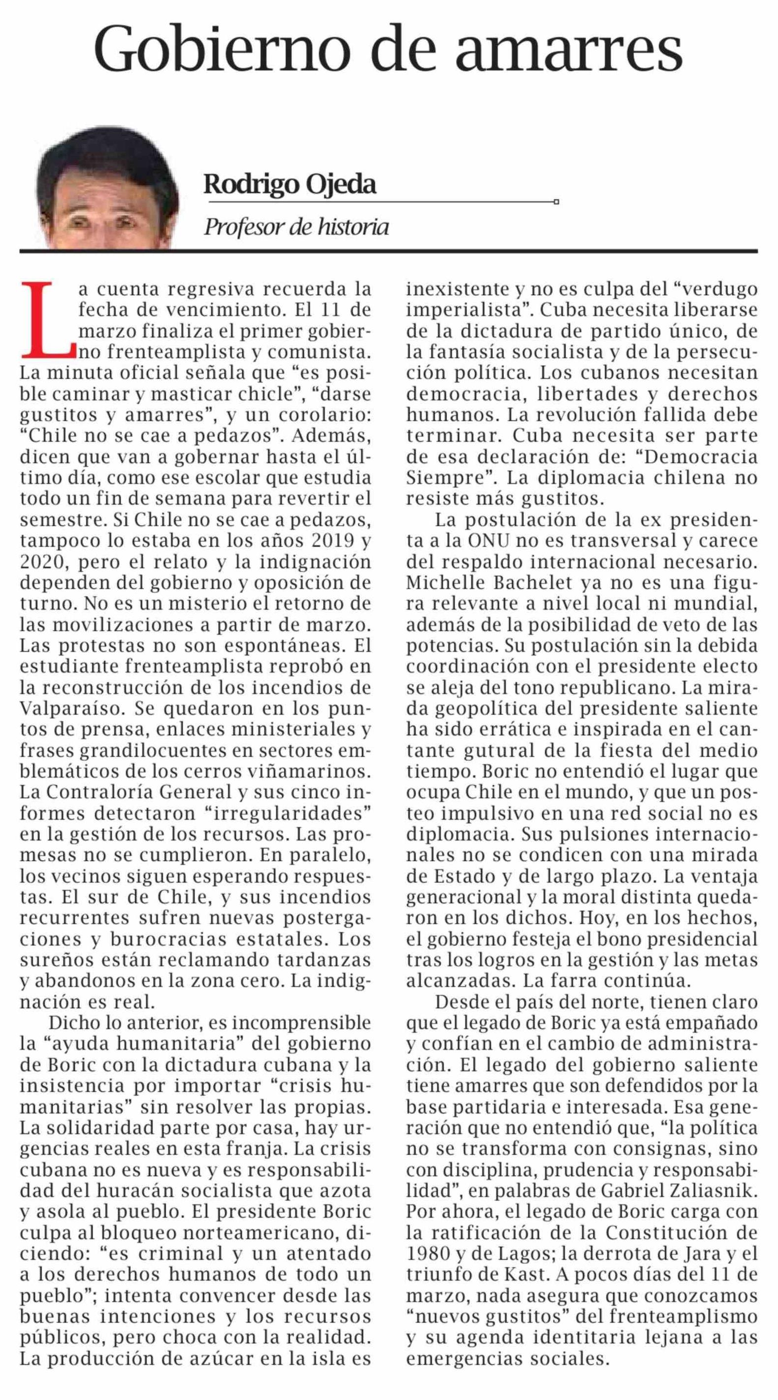 Columnas de Opinión: Gobierno de amarres