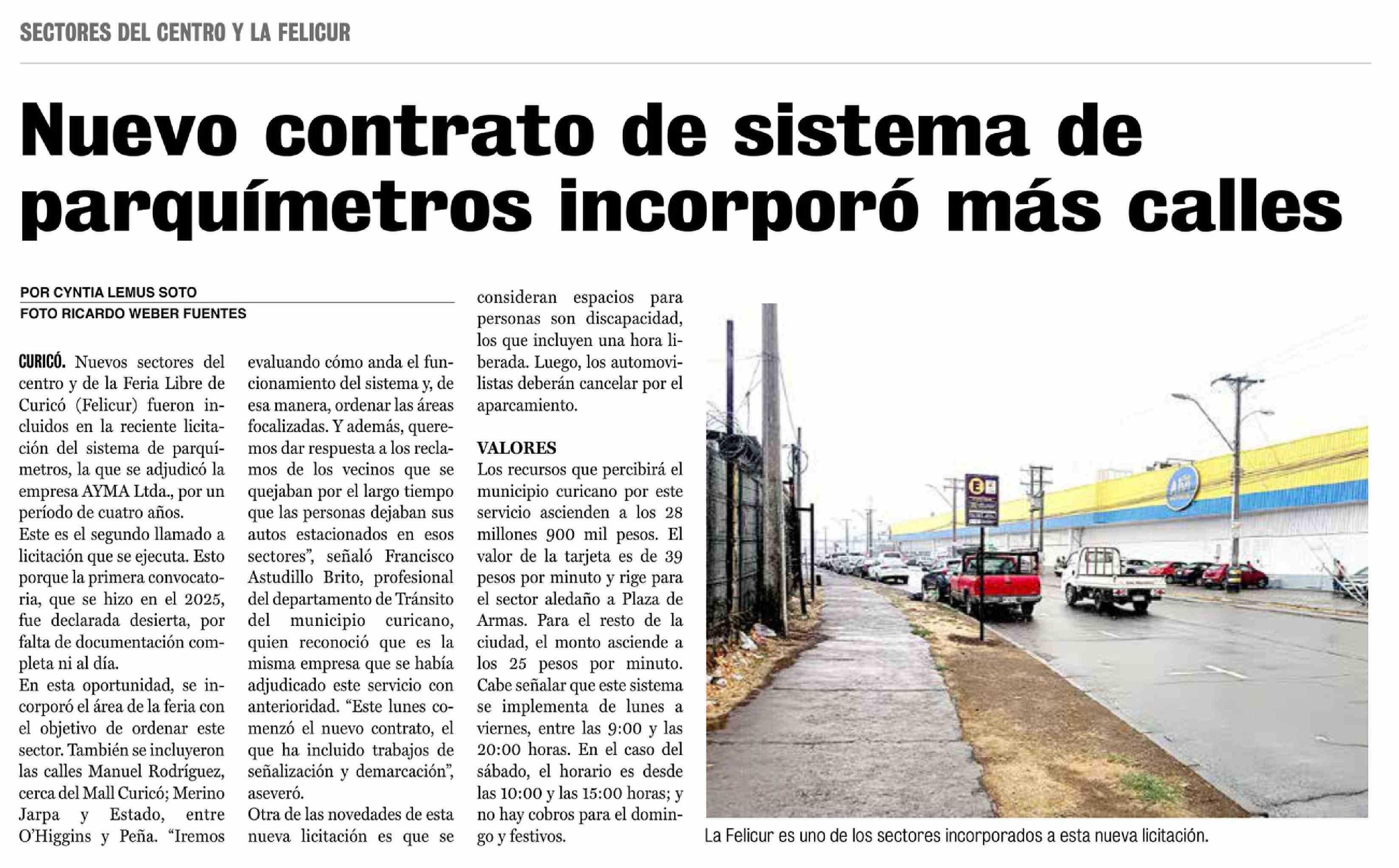 Nuevo contrato de sistema de parquímetros incorporó más calles 03-03-2026 La Prensa de Curicó |