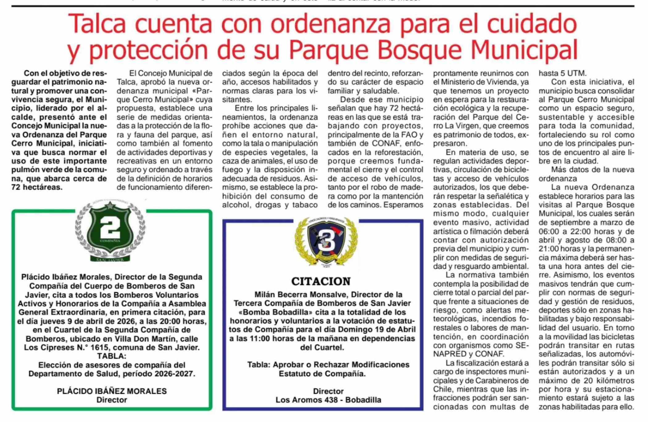 Título: Talca cuenta con ordenanza para el cuidado y protección de su Parque Bosque Municipal