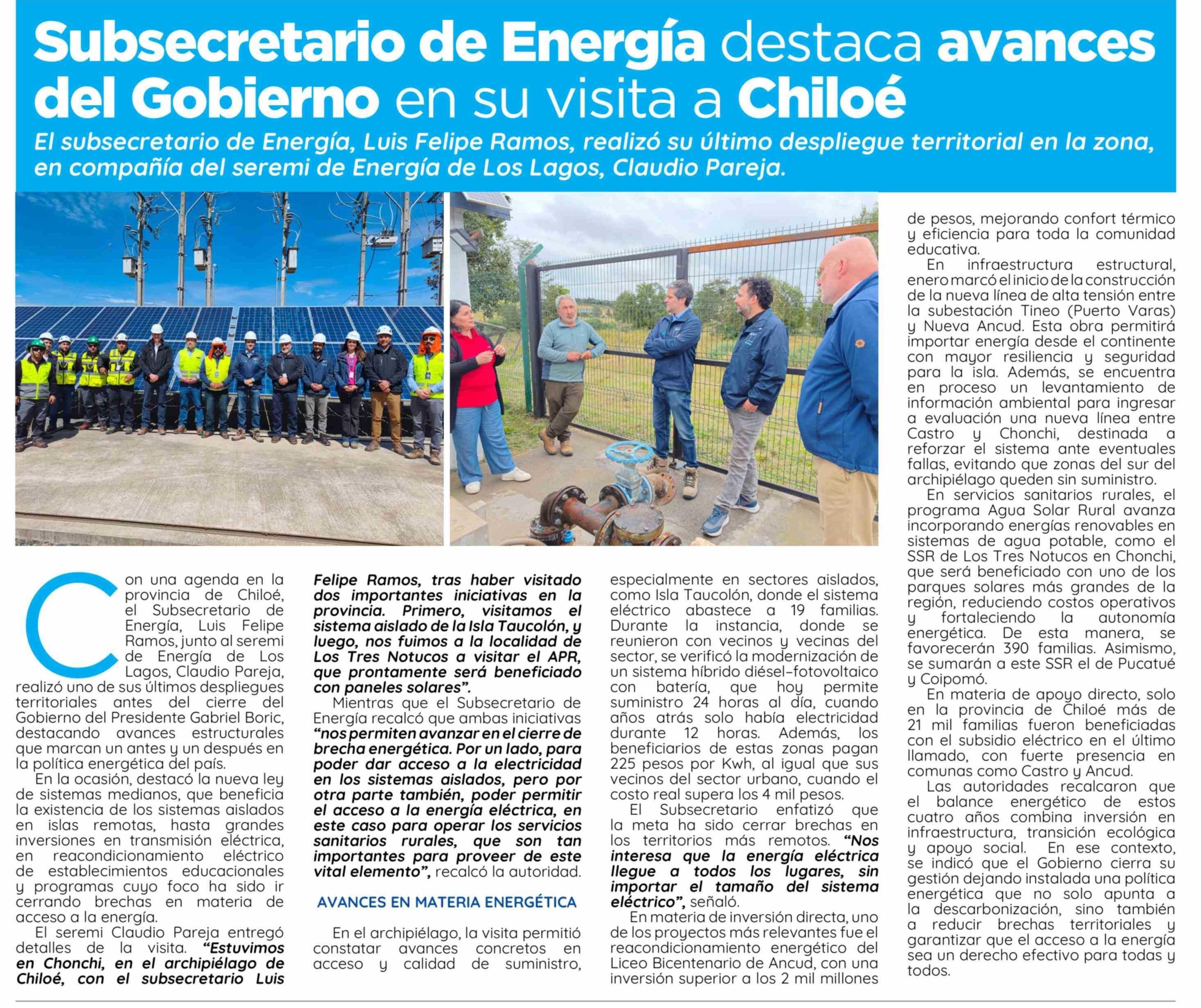 Subsecretario de Energía destaca avances del Gobierno en su visita a Chiloé 04-03-2026 El Insular |