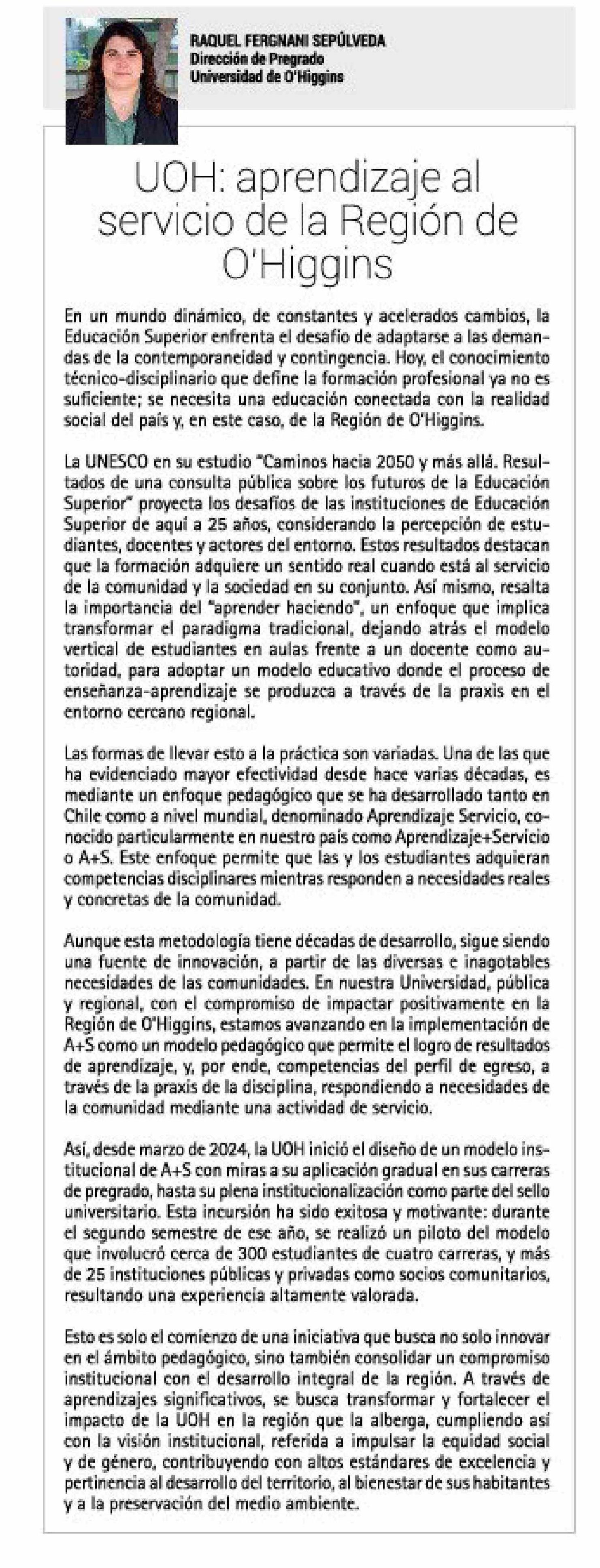 UOH: aprendizaje al servicio de la Región de O'Higgins 02-06-2025 El Rancagüino |