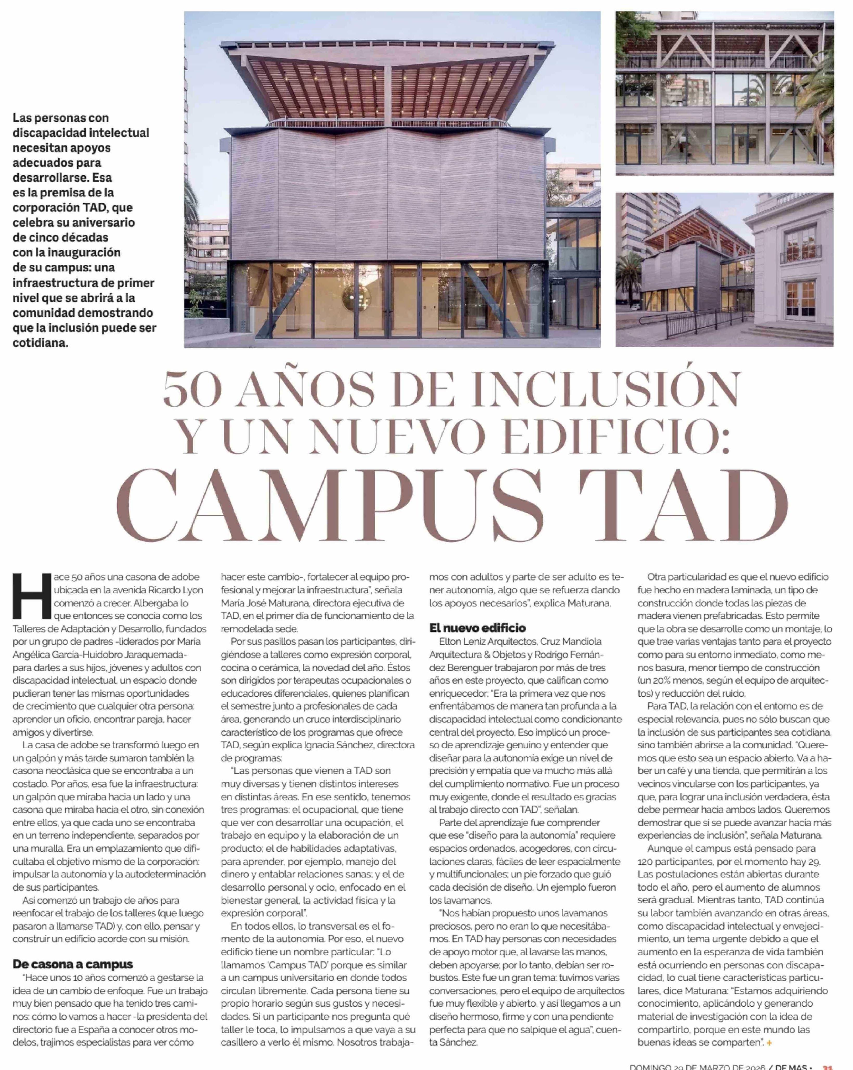 50 AÑOS DE INCLUSIÓN Y UN NUEVO EDIFICIO: CAMPUS TAD 29-03-2026 Diario Financiero |
