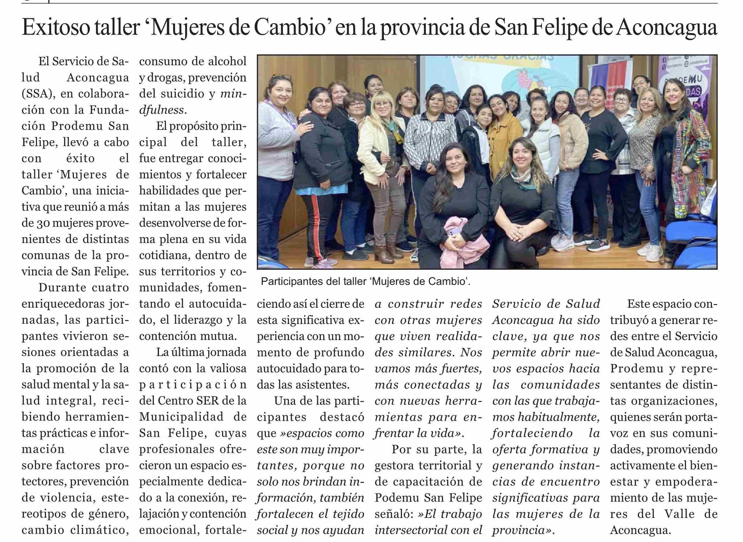 Exitoso taller “Mujeres de Cambio” en la provincia de San Felipe de Aconcagua 25-04-2025 El Trabajo |