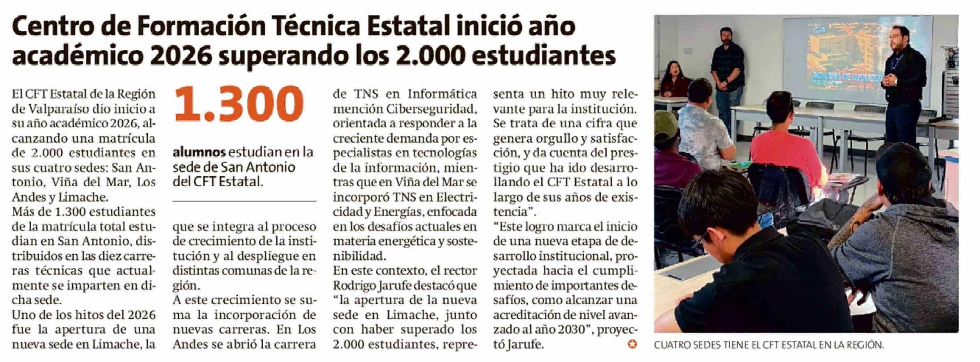 | Título: | Centro de Formación Técnica Estatal inició año académico 2026 superando los 2.000 estudiantes |