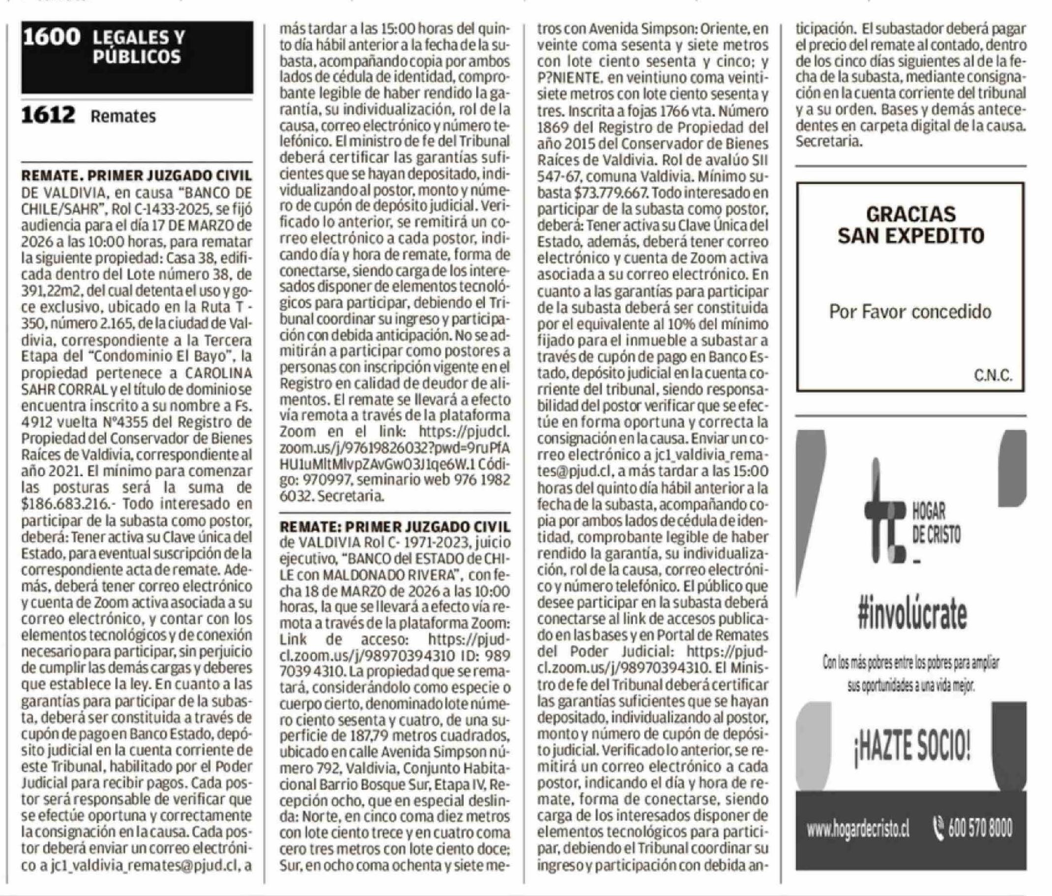 Remates: 1612 Remates 28-02-2026 Diario Austral Región de Los Ríos |