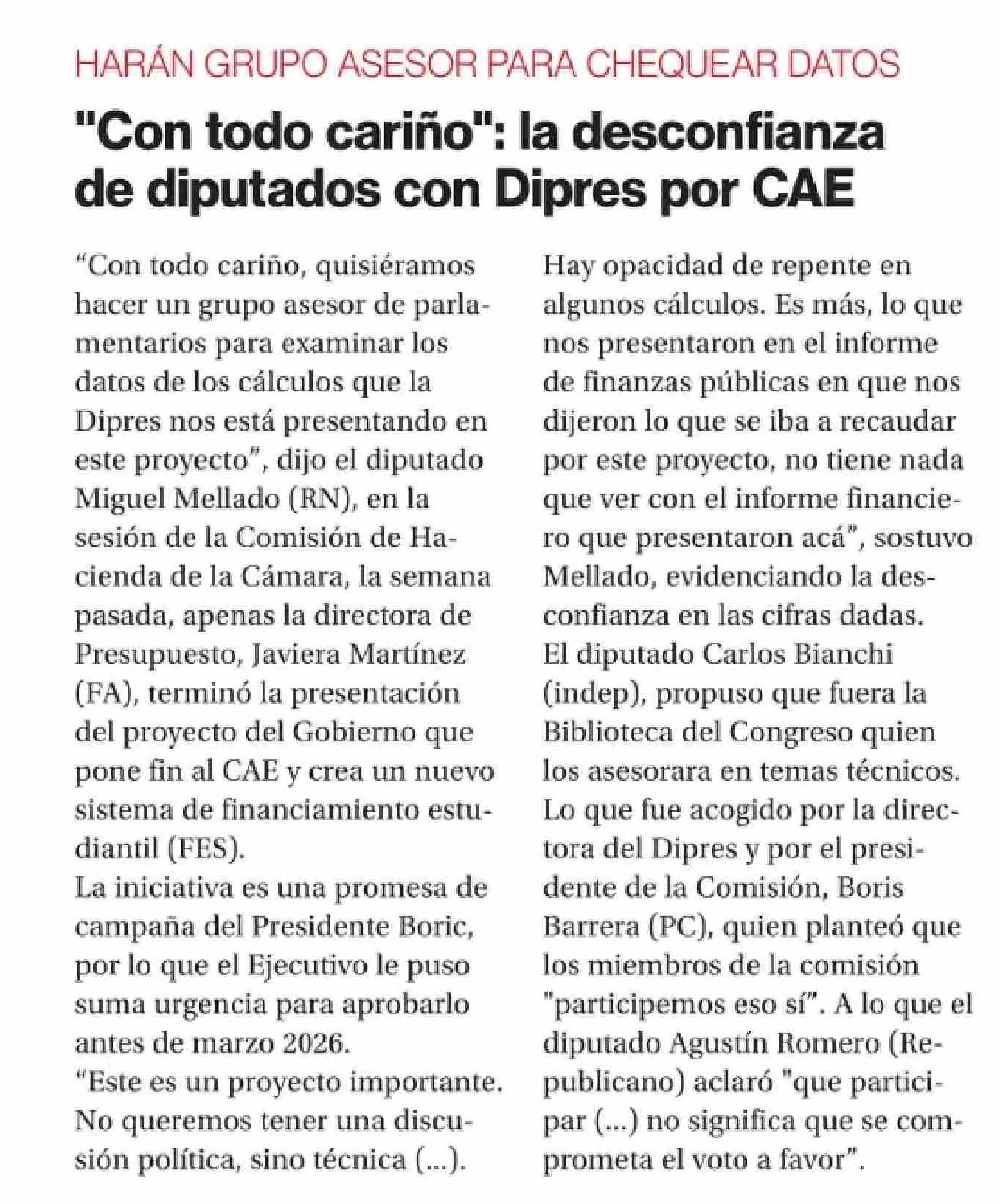 | Título: | "Con todo cariño": la desconfianza de diputados con Dipres por CAE |