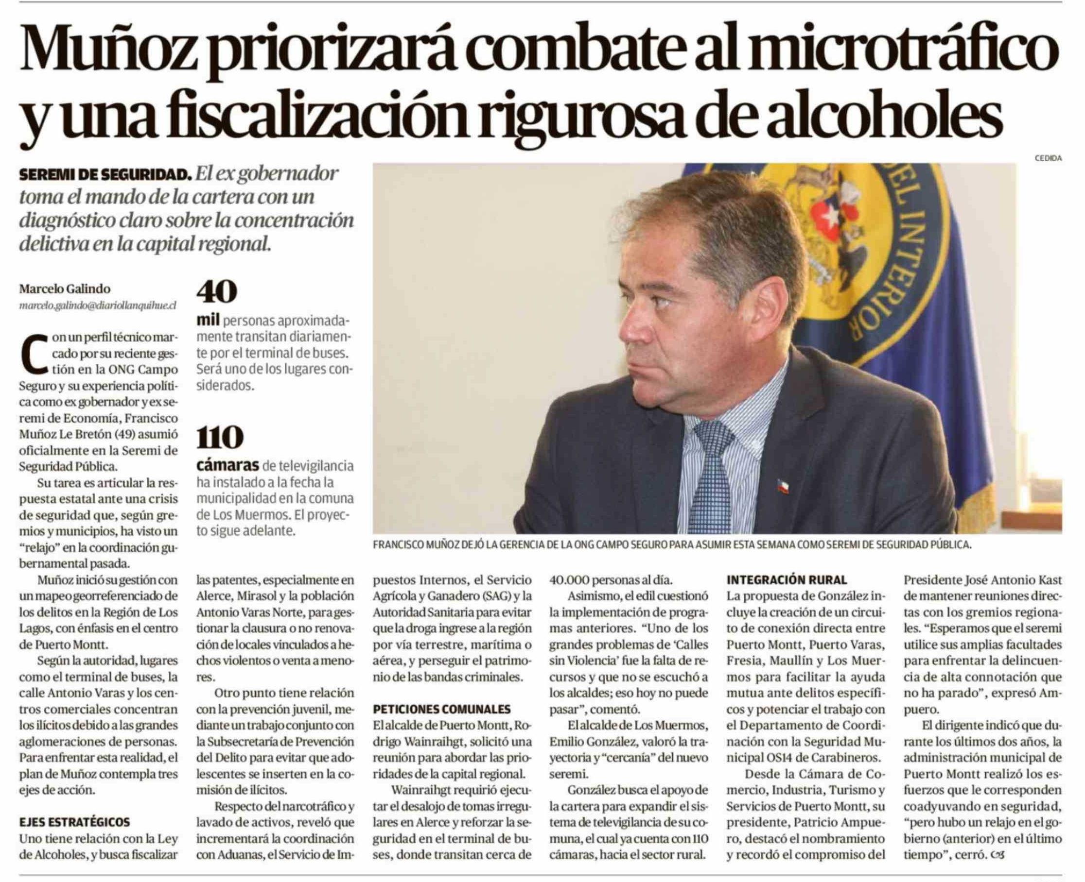 Título: Muñoz priorizará combate al microtráfico y una fiscalización rigurosa de alcoholes