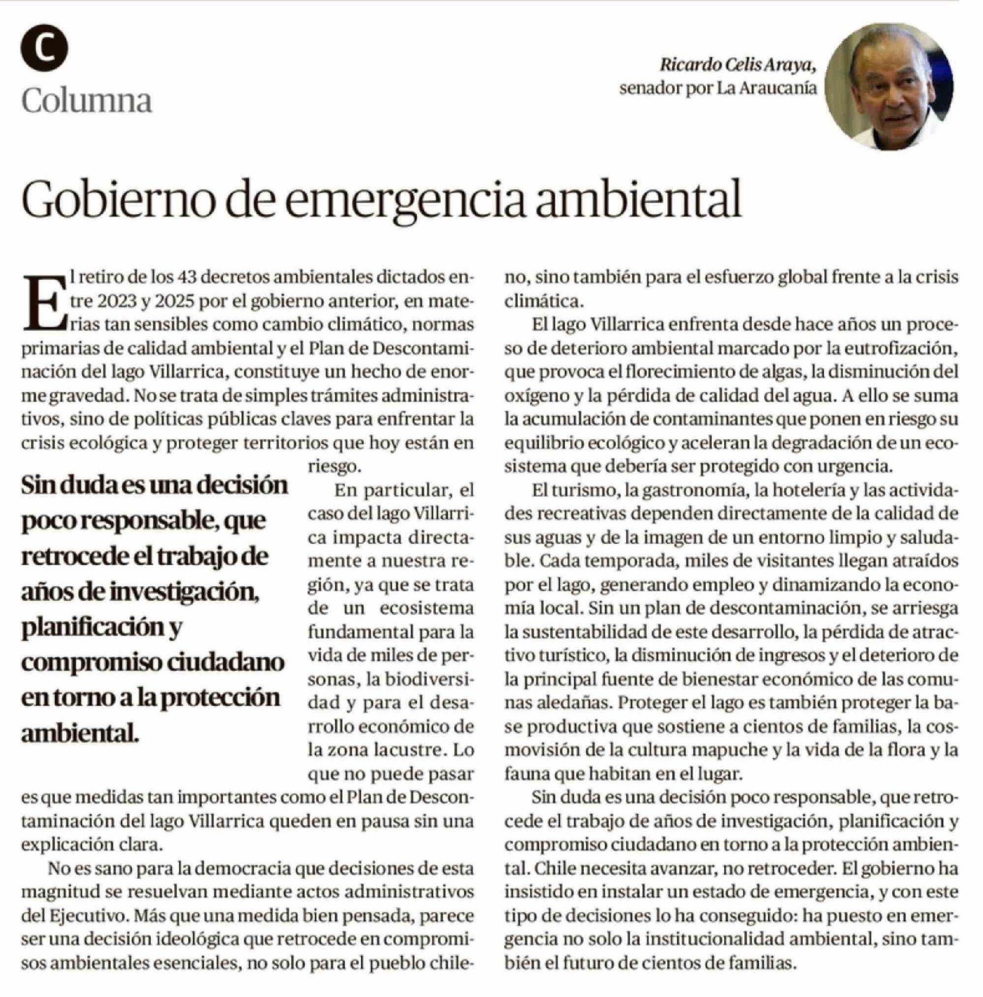 Columnas de Opinión: Gobierno de emergencia ambiental 19-03-2026 El Austral de la Araucanía |