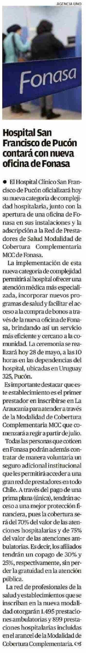 Hospital San Francisco de Pucón contará con nueva oficina de Fonasa 28-05-2025 El Austral de la Araucanía |