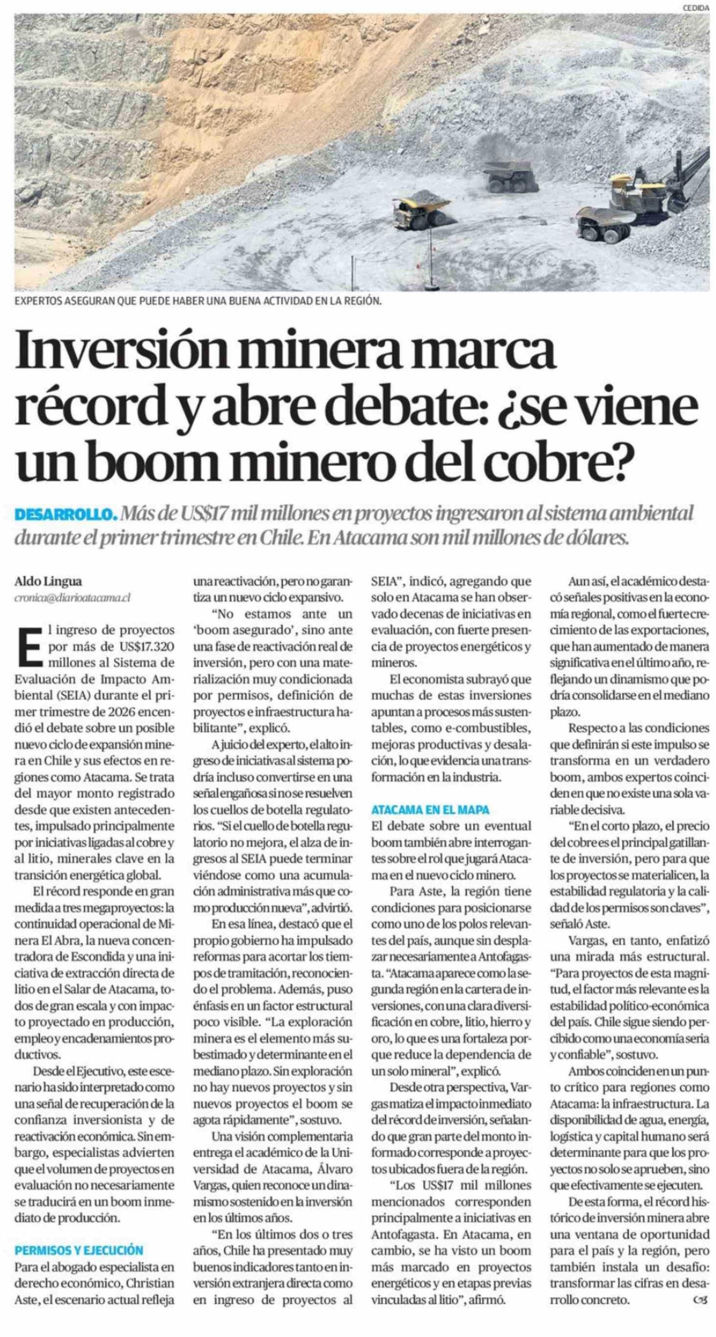 Título: Inversión minera marca récord y abre debate: ¿se viene un boom minero del cobre?