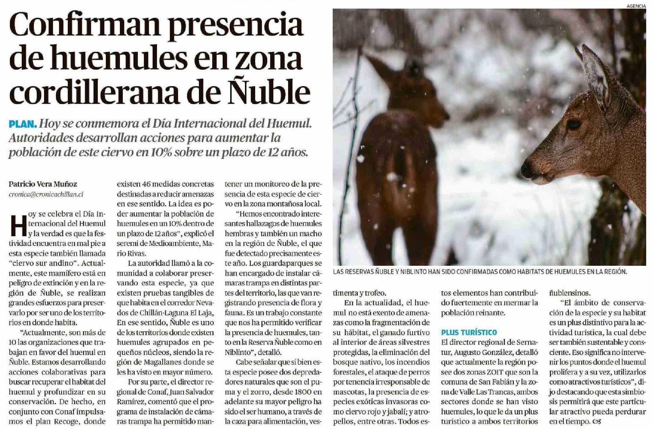 Confirman presencia de huemules en zona cordillerana de Ñuble 05-08-2023 Crónica de Chillán |
