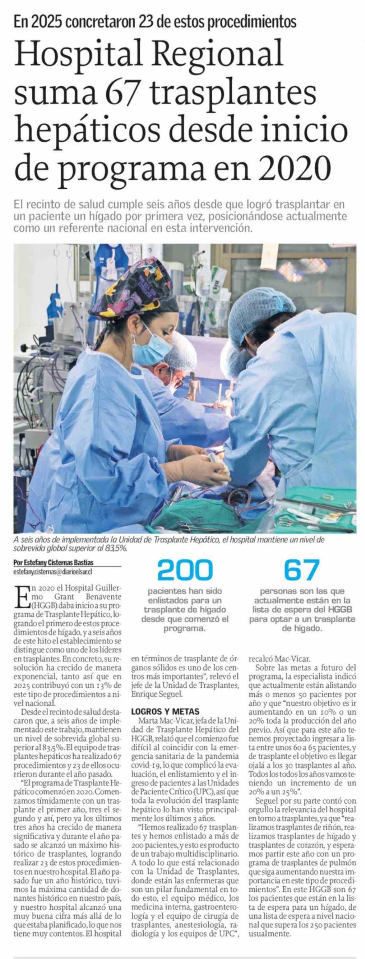 Título: Hospital Regional suma 67 trasplantes hepáticos desde inicio de programa en 2020