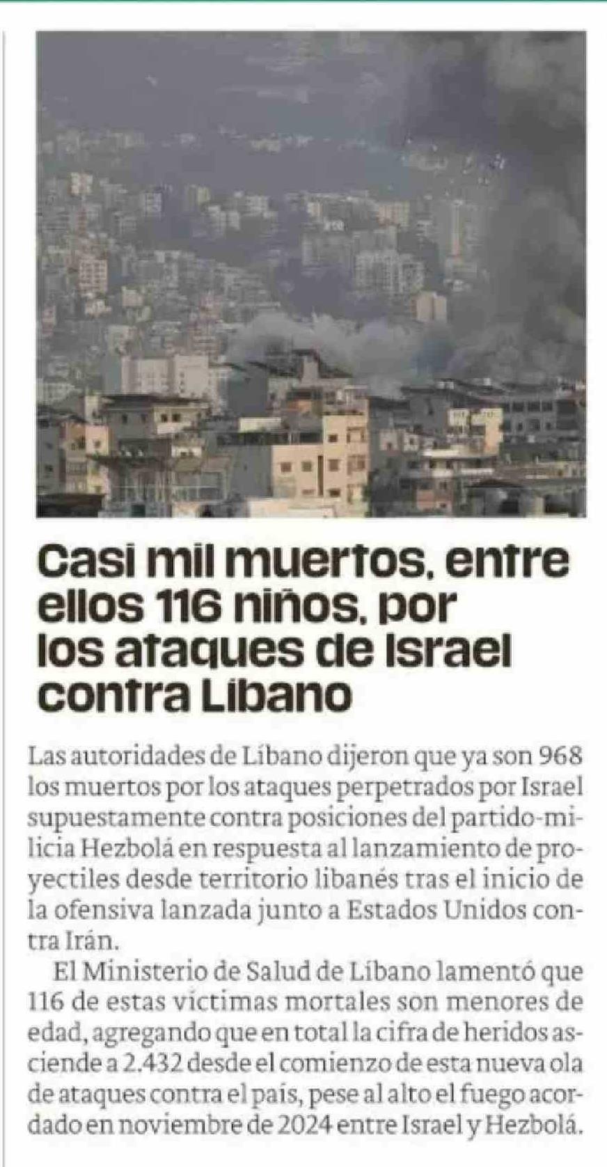 Título: Casi mil muertos, entre ellos 116 niños, por los ataques de Israel contra Libano