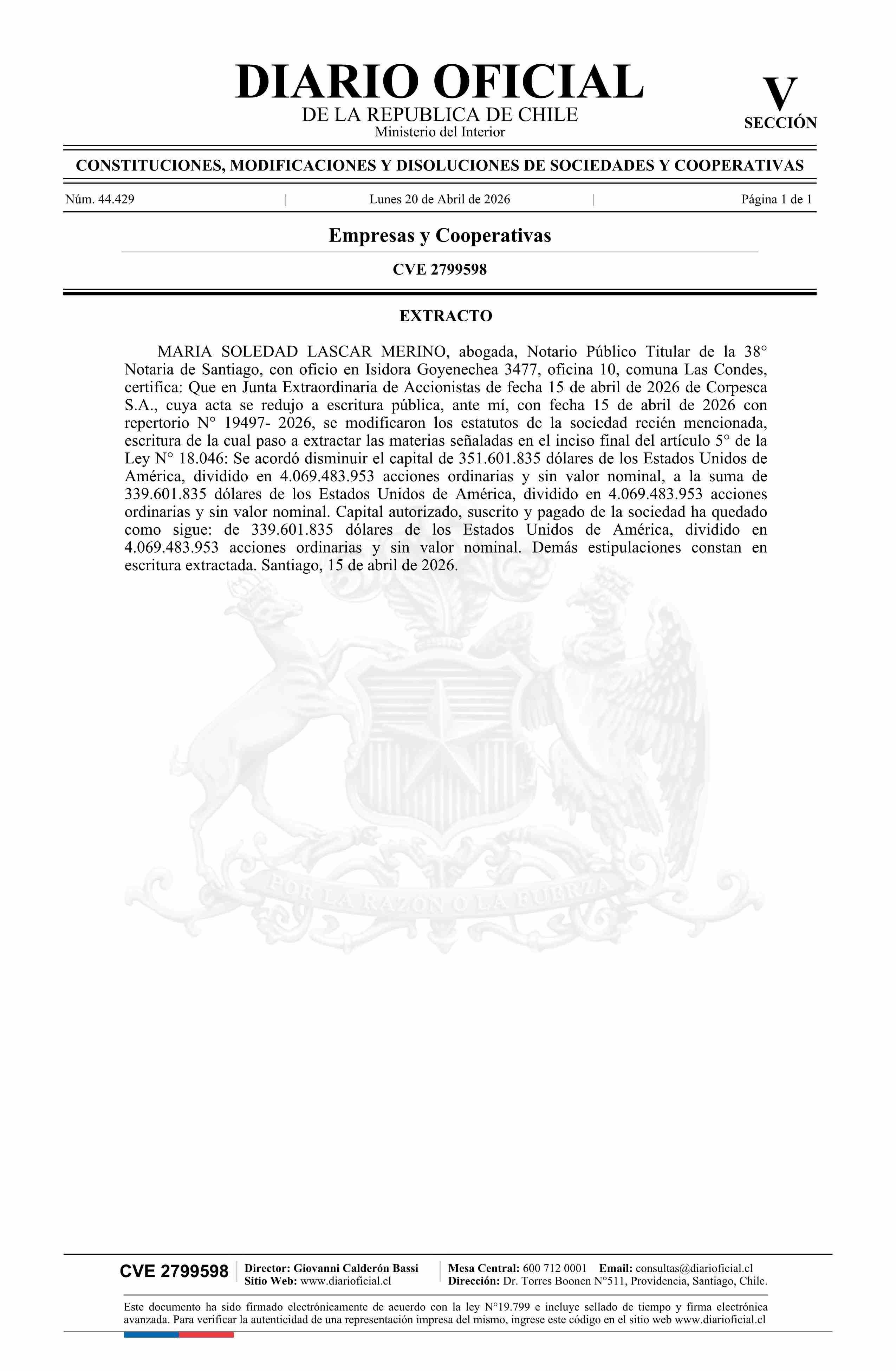 Fuente: Diario Oficial Edición Electrónica (Diario Oficial de Chile - 5 Empresas Y Cooper) Página(s): 59