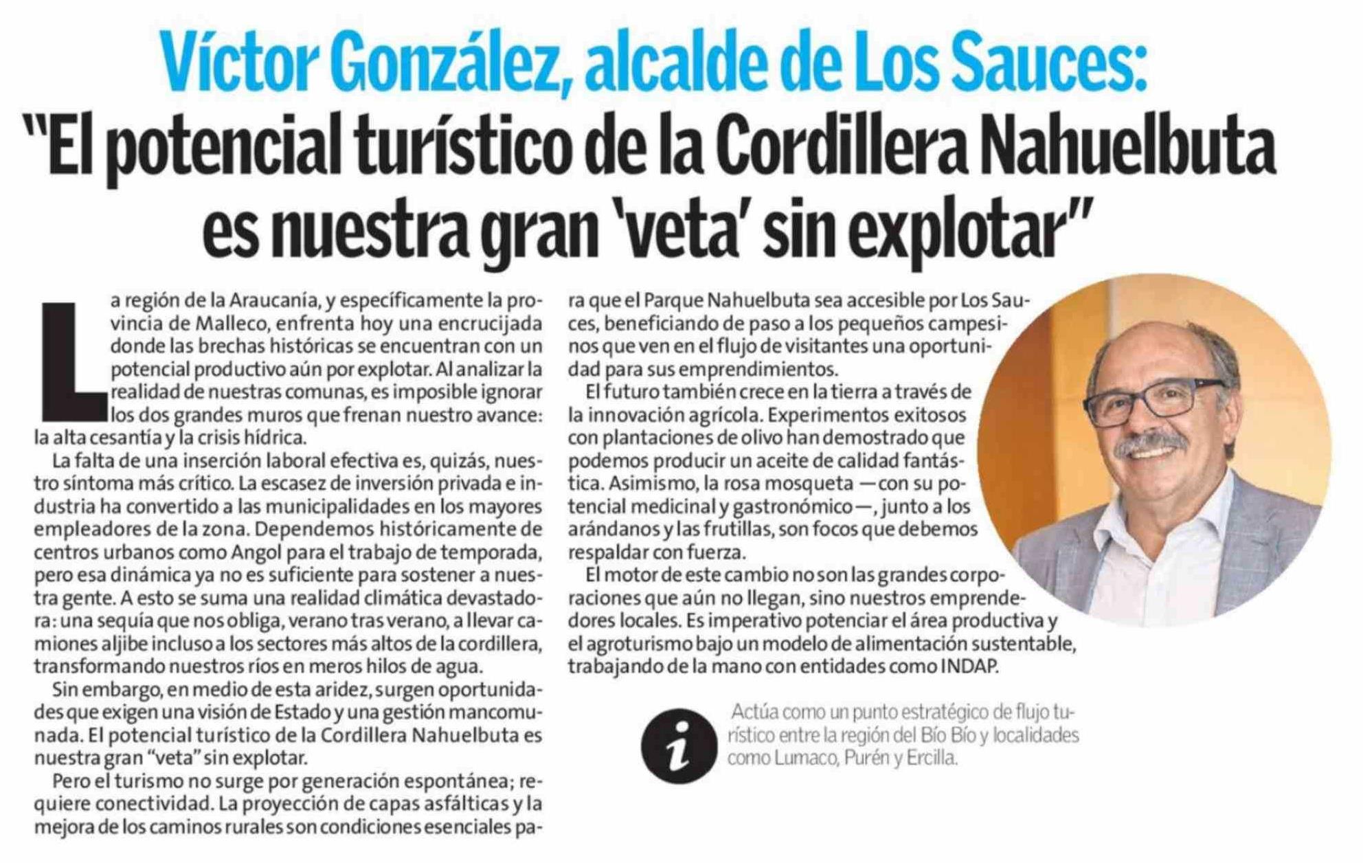 Título: Columnas de Opinión: "El potencial turístico de la Cordillera Nahuelbuta es nuestra gran 'veta' sin explotar"