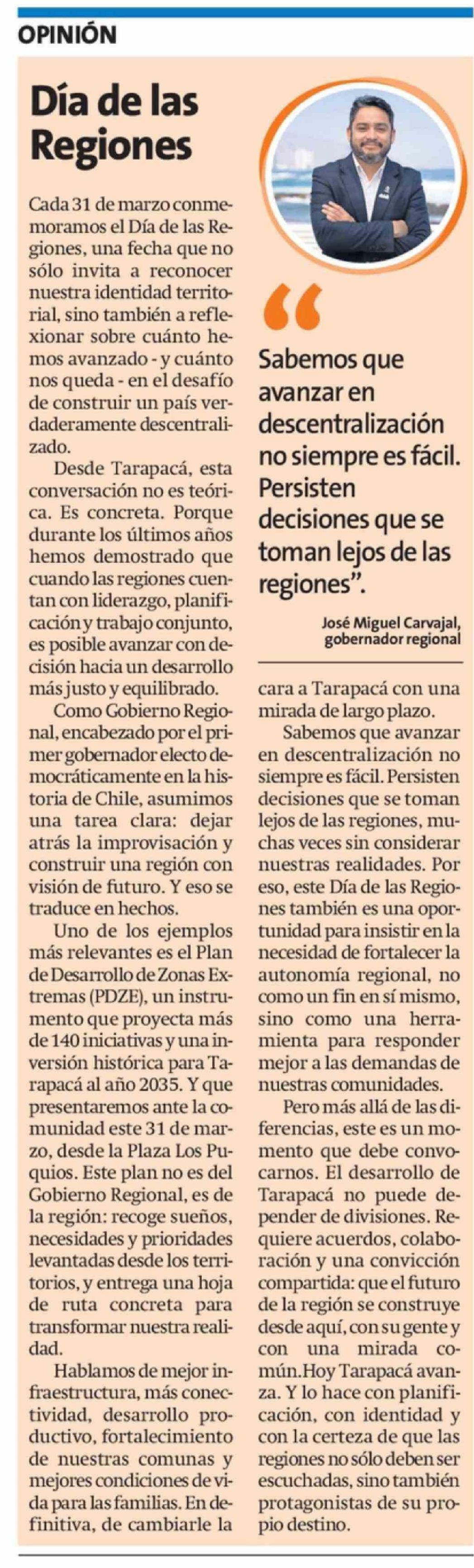 Columnas de Opinión: Día de las Regiones 30-03-2026 La Estrella de Iquique |