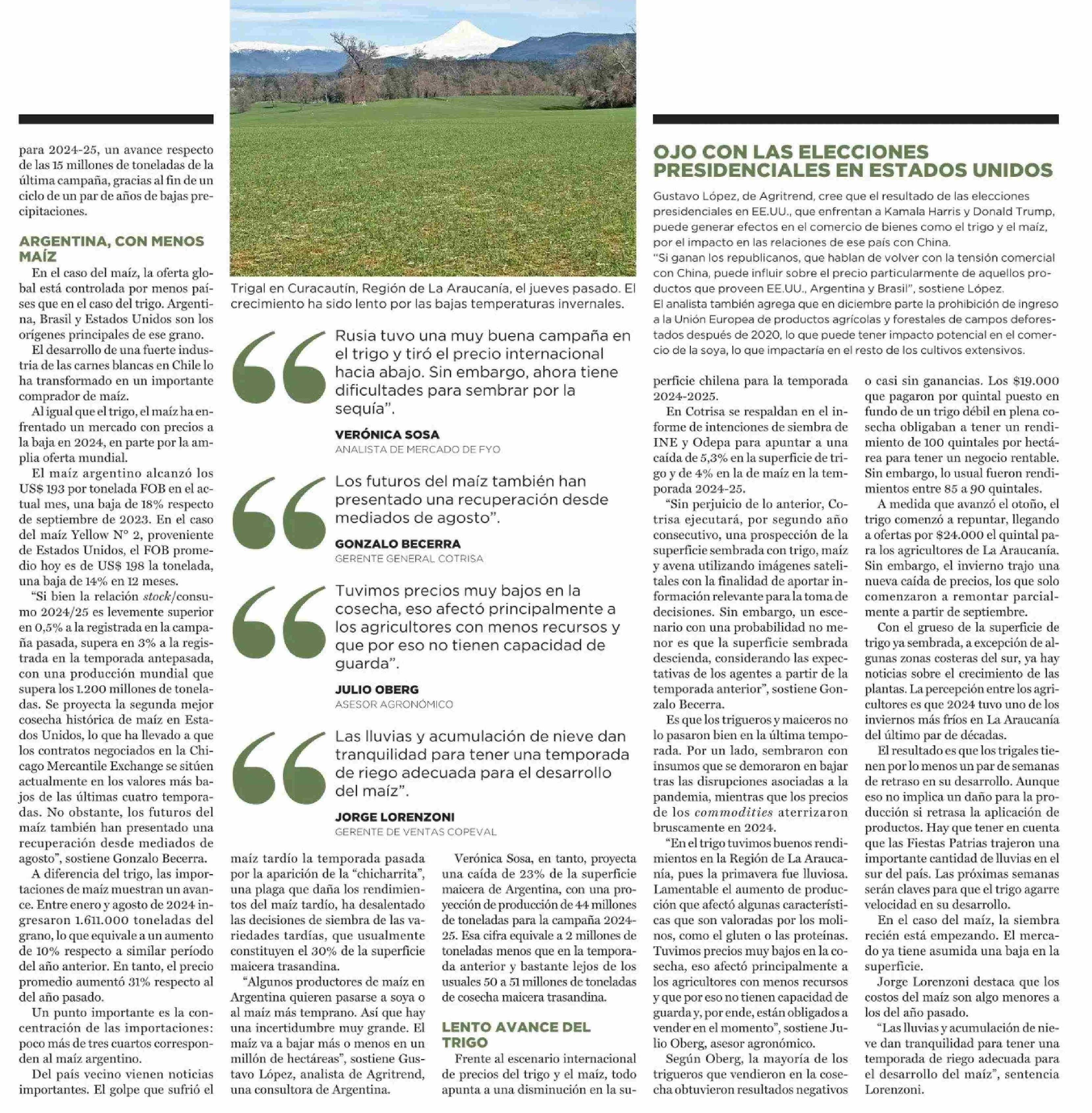 Trigo y maiz se achican 30-09-2024 El Mercurio |