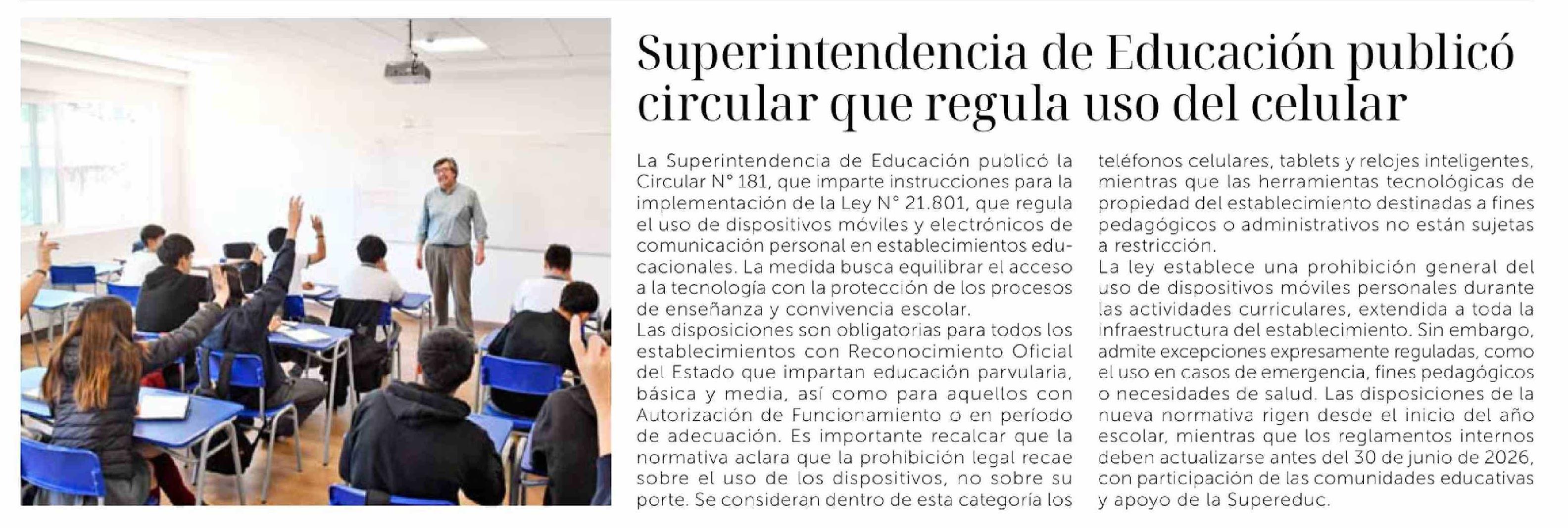Título: Superintendencia de Educación publicó circular que regula uso del celular