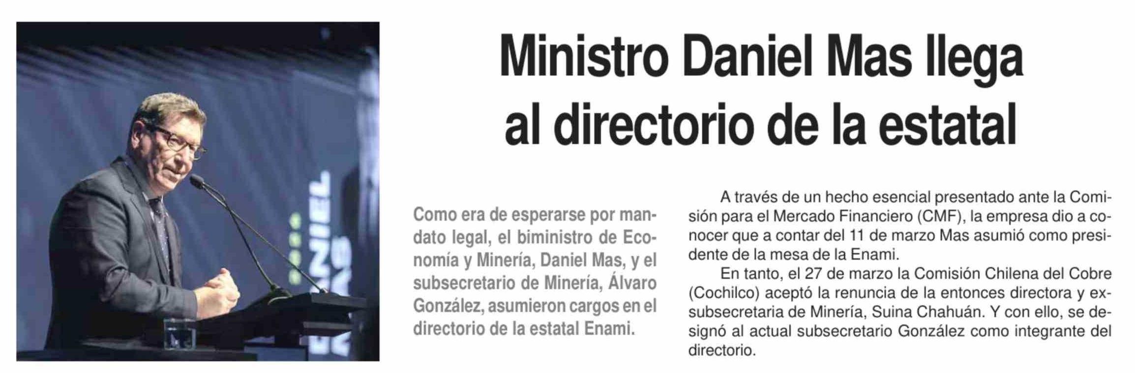 | Título: | Ministro Daniel Mas llega al directorio de la estatal |