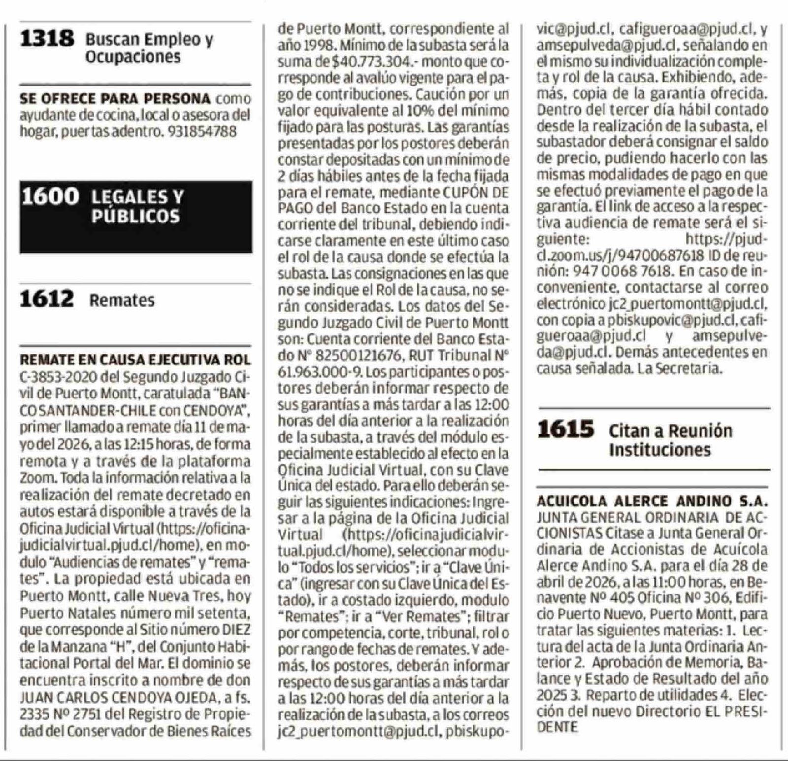 Fecha: 25-04-2026 Sector: Remates Región: Región de Los Lagos